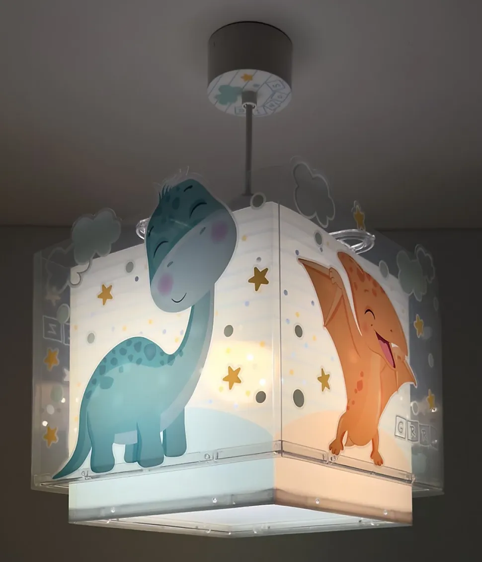 Lustre et lampe suspension enfant Baby Dinos DinosauresQuand vous éteignez la lumière, l’aventure commence ! Une chambre sombre n’est plus une source d’angoisse. Avec le lustre et lampe suspension Baby Dinos, la nuit se transforme en un petit voyage dans le monde jurassique le plus adorable qui soit. Pas de rugissements, seulement les murmures lumineux de petits dinosaures qui veillent sur le sommeil de ceux qui les regardent. Lorsqu’elle est allumée, tout est baigné d’une lumière chaude. Lorsqu’elle est éteinte… quelque chose change, les silhouettes des baby dinos brillent d’une lumière douce et magique, comme si elles flottaient dans l’obscurité. Idéal pour créer un espace sûr et accueillant.