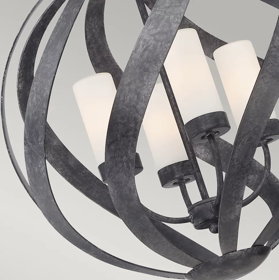 Sensation de spirale, la ferronnerie audacieuse du Blacksmith se déplace en courbes douces le long d’une silhouette en forme d’orbe. La finition noire antique comprend des accents de charbon de bois et d’argent foncé pour un effet de fumée sulfureux. Les bougies sont équipées un abat-jour cylindrique en verre dépoli qui adoucit la lumière de cette étonnante collection. Fabriquée selon la norme IP44, cette gamme est idéale pour les espaces de vie extérieurs.