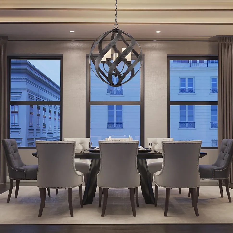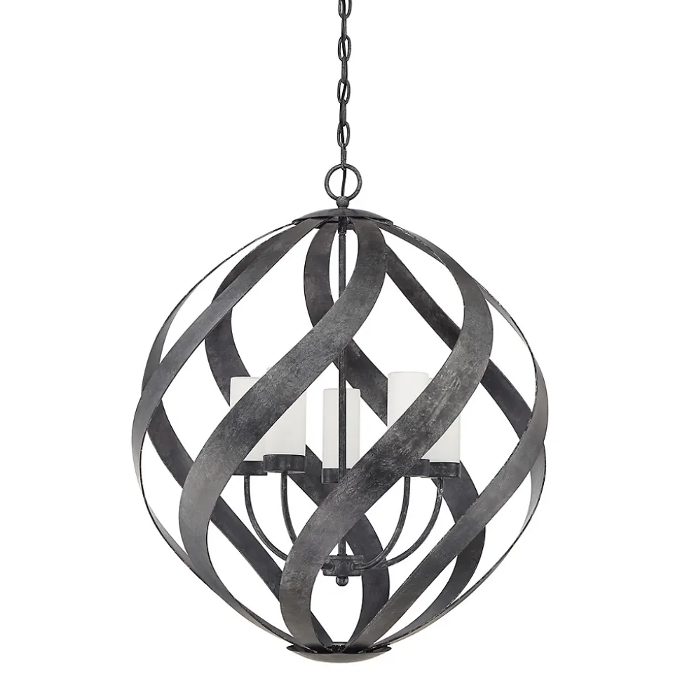 Sensation de spirale, la ferronnerie audacieuse du Blacksmith se déplace en courbes douces le long d’une silhouette en forme d’orbe. La finition noire antique comprend des accents de charbon de bois et d’argent foncé pour un effet de fumée sulfureux. Les bougies sont équipées un abat-jour cylindrique en verre dépoli qui adoucit la lumière de cette étonnante collection. Fabriquée selon la norme IP44, cette gamme est idéale pour les espaces de vie extérieurs.