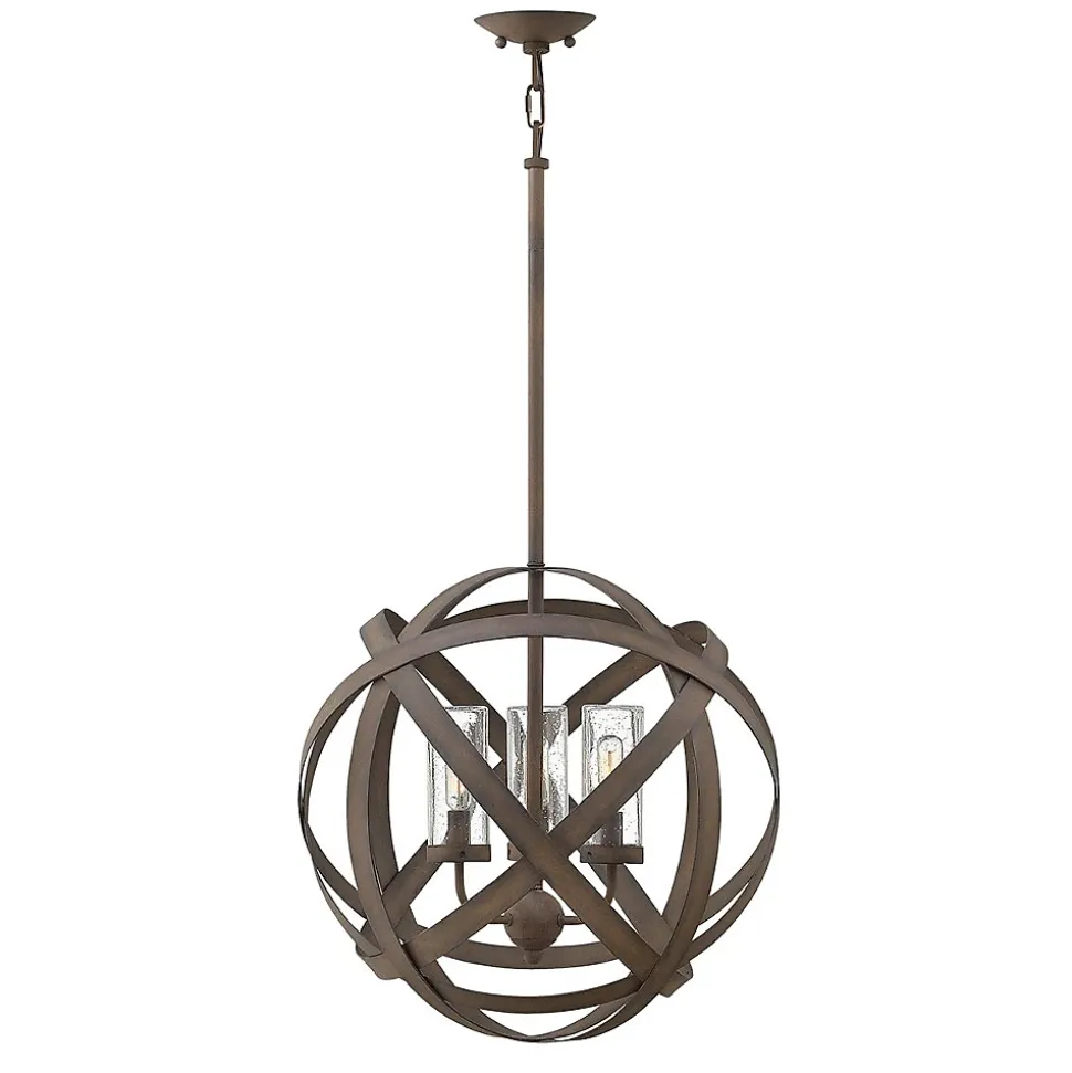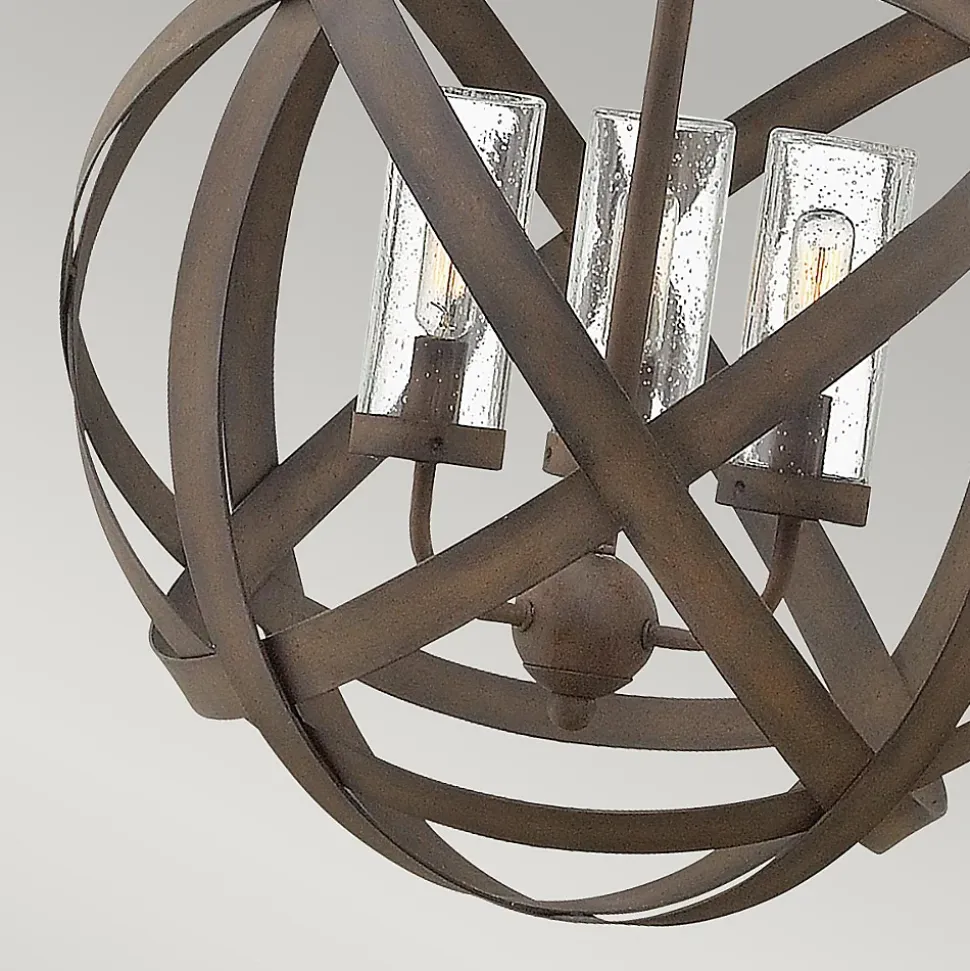 Le style haut de gamme se retrouve à l’extérieur avec la collection Carson. Ces produits extérieurs fabriqués à la main sont conformes à la norme IP44 et présentent d’audacieux rubans métalliques superposés dans une finition fer vintage. Associé à un verre sédimenté, ce design transitionnel illuminera toute oasis extérieure.