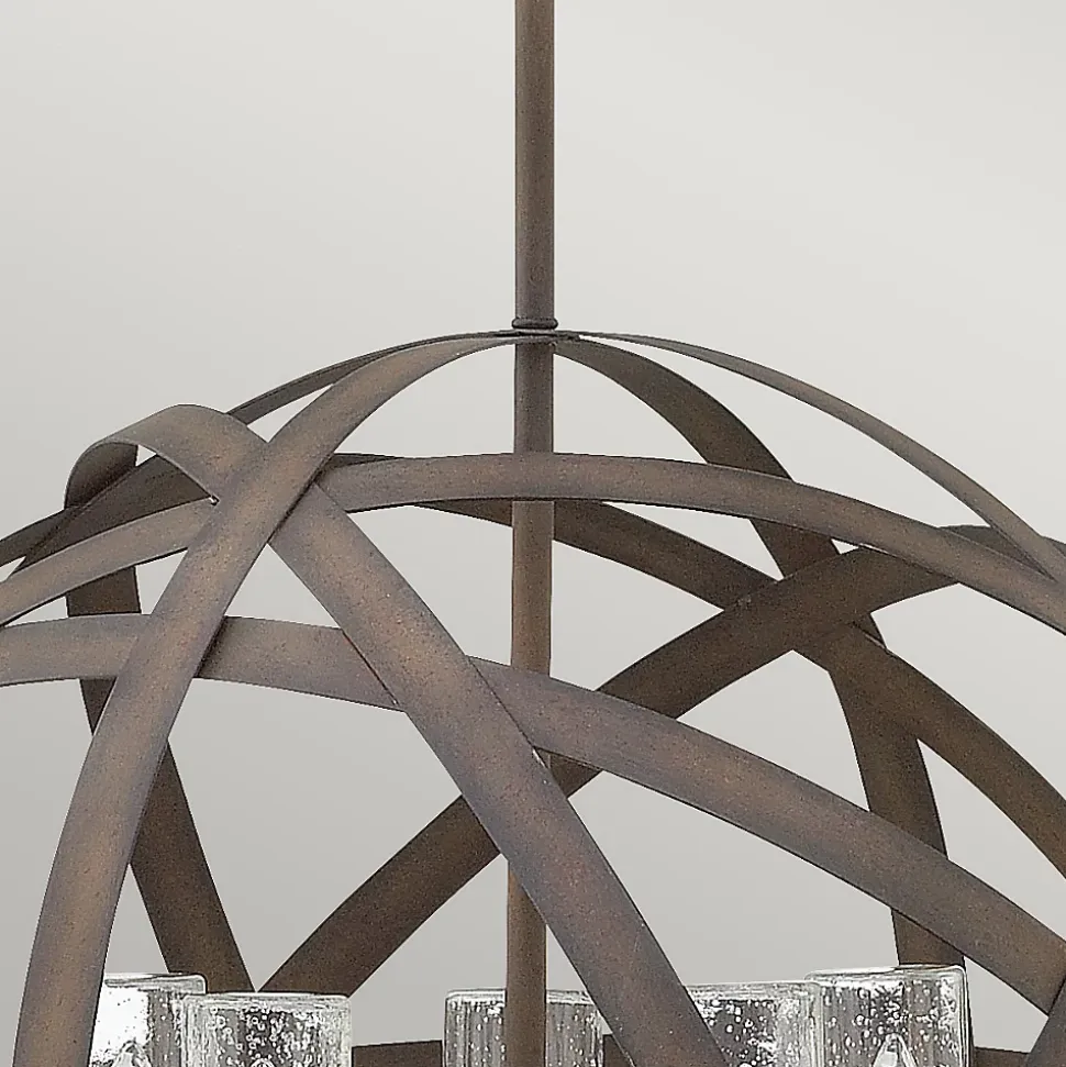 Le style haut de gamme se retrouve à l’extérieur avec la collection Carson. Ces produits extérieurs fabriqués à la main sont conformes à la norme IP44 et présentent d’audacieux rubans métalliques superposés dans une finition fer vintage. Associé à un verre sédimenté, ce design transitionnel illuminera toute oasis extérieure.