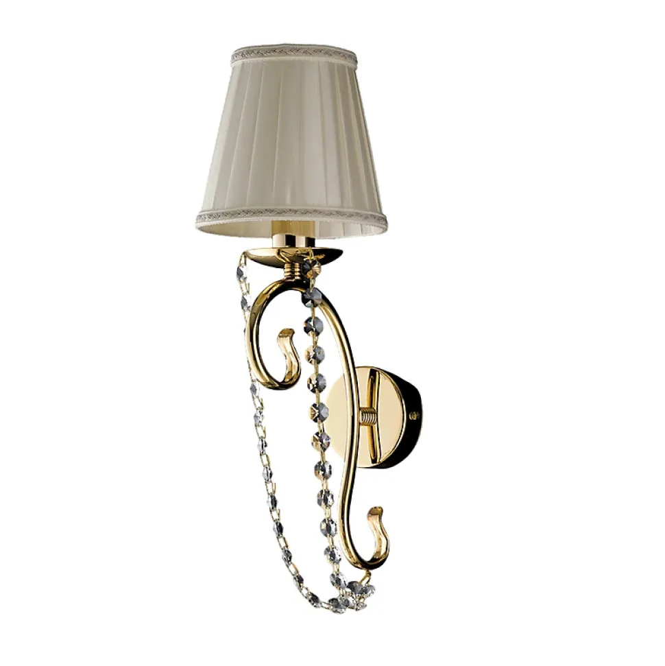 Magda – Applique 1 lumière en fer doré avec abat-jourMesures du produit : H.41 – L.13 – P.15Nombre d’ampoules : 1xE14Puissance : 42 watts maximumFinition : Or poliCe produit est fabriqué artisanalement. De légères imperfections visuelles sont considérées comme des caractéristiques naturelles du travail manuel