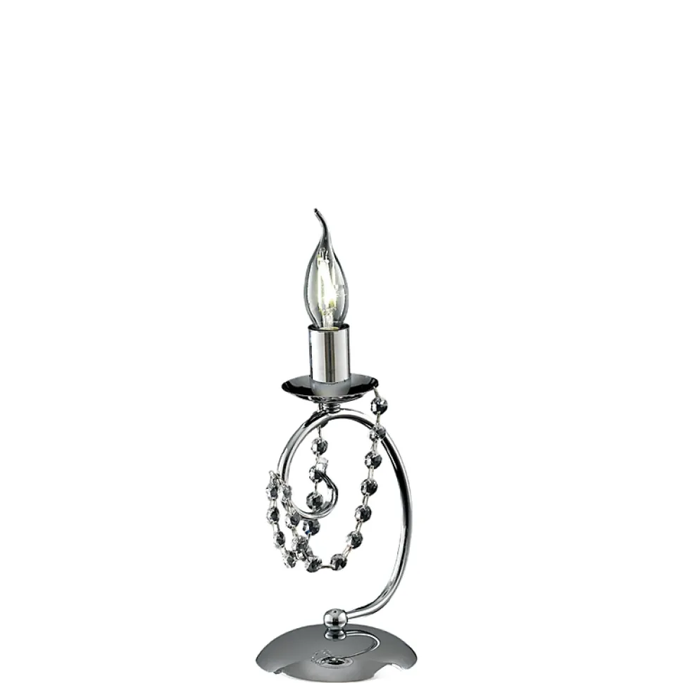 Magda – Lampe de table 1 lumière en fer chromé Dimensions du produit : H.27 – Ø13Nombre d’ampoules : 1xE14Puissance : 42 watts maximumFinition : Chrome poliCe produit est fabriqué artisanalement. De légères imperfections visuelles sont considérées comme des caractéristiques naturelles du travail manuel