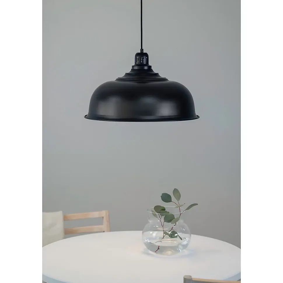 Les caractéristiques techniquesLa suspension Port de Markslöjd est une grande lampe de plafond au design classique, idéale pour éclairer une table à manger grâce à son large abat-jour de 50 cm de diamètre.Elle est équipée d’un câble textile noir de 1,5 mètre et se suspend à l’aide d’un crochet. L’intérieur blanc du réflecteur favorise une diffusion optimale de la lumière.Elle fonctionne avec une ampoule E27 de 40W max ou équivalent LED (non fournie).Les avantages esthétiquesAvec sa finition noire mate à l’extérieur et blanche à l’intérieur, cette suspension s’intègre facilement dans les intérieurs de style scandinave, industriel ou moderne.Sa forme simple et sa grande taille en font une pièce maîtresse au-dessus d’une table à manger ou dans une cuisine spacieuse.