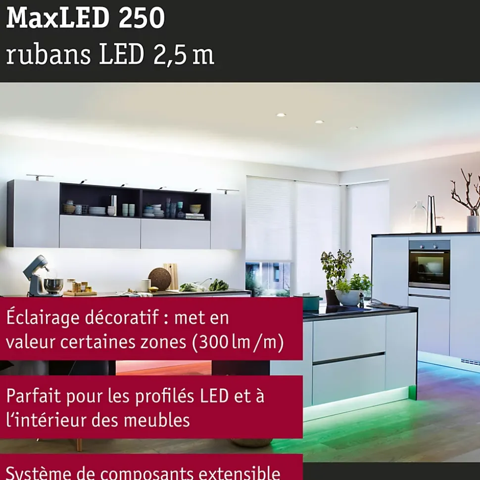 - Ruban RGBW MaxLED 250 de 2,5 m, puissant et économique, 17 W.