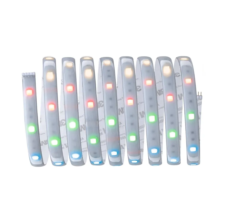 Rubans individuels|IP44 – Protection contre les projections d’eau, y compris en extérieur|Pour extension des kits de base MaxLED|Peut être raccourci en fonction de la longueur souhaitée|Face arrière autocollante pour un montage simple|Matériel flexible pour le montage sur des surfaces planes ou courbes|Changement de couleur RGB|La technologie LED fait économiser jusqu’à 80 % d’énergie par rapport aux ampoules à incandescence classiques.|Inclus le connecteur à 5 broches pour une connexion simple au ruban|Montage simple par système de connexion