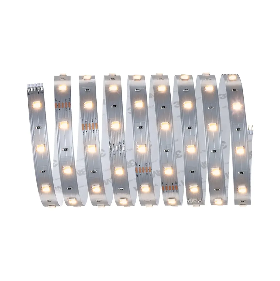 Rubans individuels|Avec commande de la lumière blanche (Tunable White)|Température de couleur: 2700K Blanc chaud – 6500K – Lumière du jour|Peut être raccourci en fonction de la longueur souhaitée|Face arrière autocollante pour un montage simple|Matériel flexible pour le montage sur des surfaces planes ou courbes|La technologie LED fait économiser jusqu’à 80 % d’énergie par rapport aux ampoules à incandescence classiques.|Inclus le connecteur à 5 broches pour une connexion simple au ruban|Montage simple par système de connexion