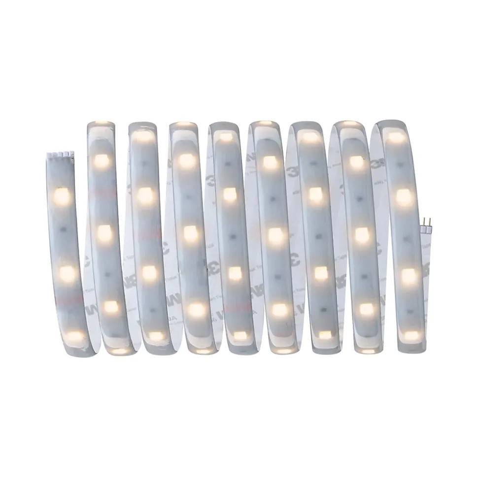 Rubans individuels|Avec commande de la lumière blanche (Tunable White)|IP44 – Protection contre les projections d’eau, y compris en extérieur|Température de couleur: 2700K Blanc chaud – 6500K – Lumière du jour|Peut être raccourci en fonction de la longueur souhaitée|Face arrière autocollante pour un montage simple|Matériel flexible pour le montage sur des surfaces planes ou courbes|La technologie LED fait économiser jusqu’à 80 % d’énergie par rapport aux ampoules à incandescence classiques.|Inclus le connecteur à 5 broches pour une connexion simple au ruban|Montage simple par système de connexion