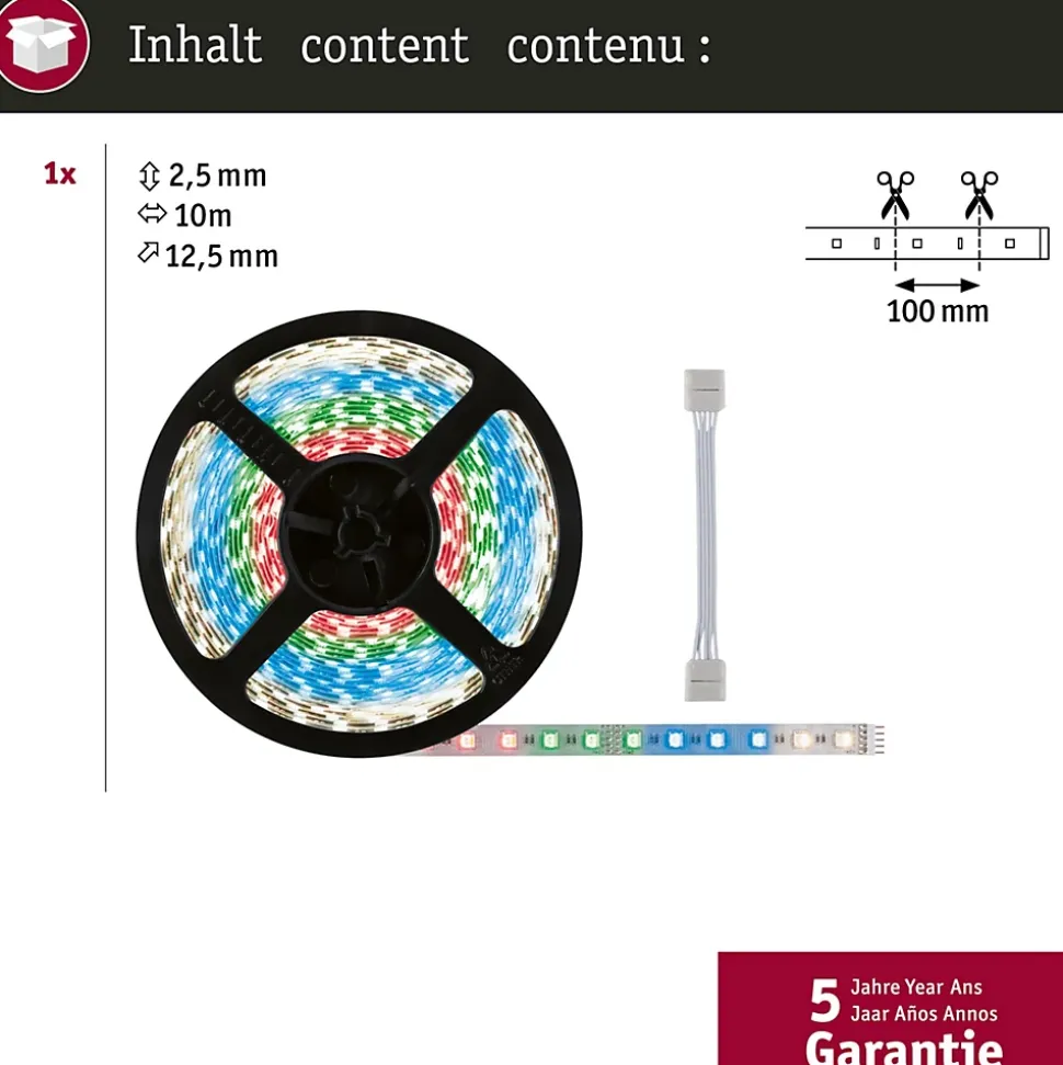 - Longueur 10 m idéale pour grands projets, installation d’objets ou éclairage continu.