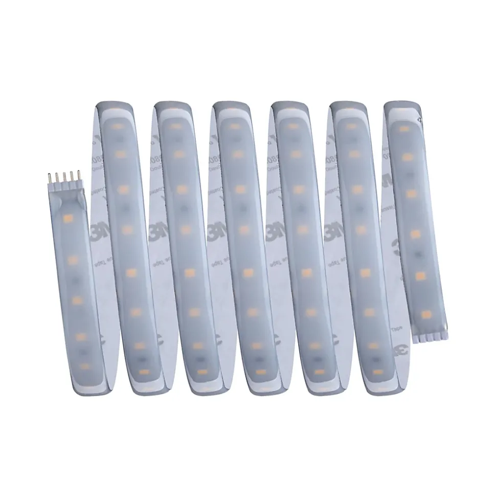 IP44 – Protection contre les projections d’eau, y compris en extérieur|Rubans individuels|Peut être raccourci en fonction de la longueur souhaitée|Face arrière autocollante pour un montage simple|Matériel flexible pour le montage sur des surfaces planes ou courbes|Montage simple par système de connexion