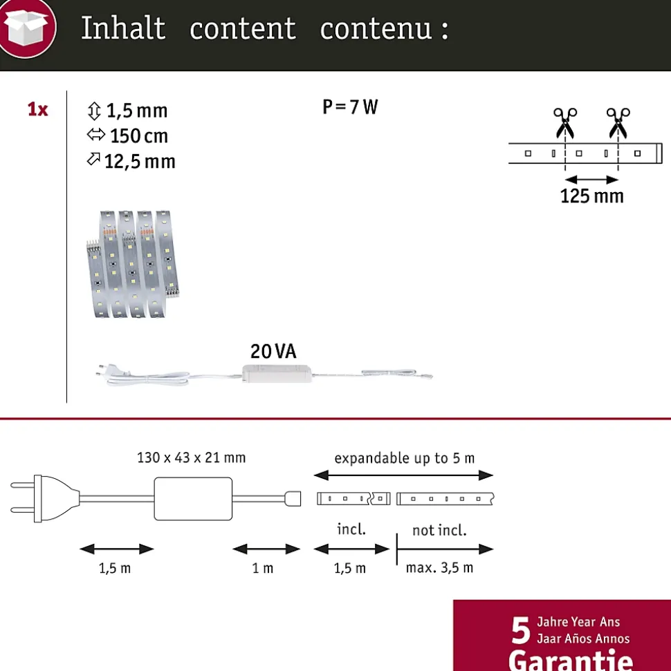 MaxLED 500 Strip LED Kit de base 1,5m blanc neutre 5,5W 550lm/m 4000K 20VA