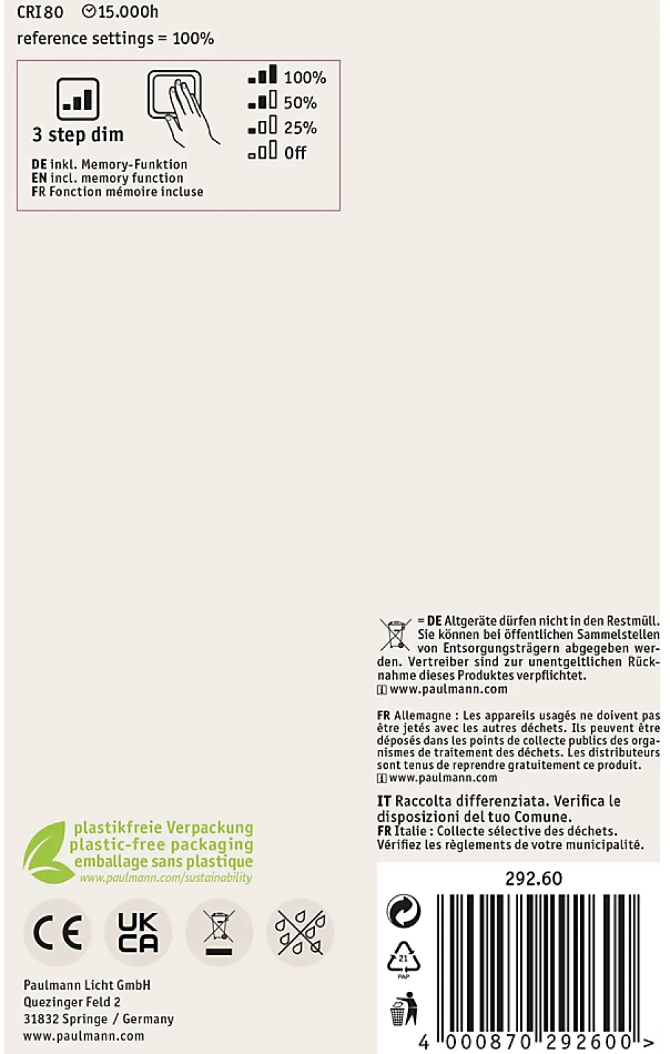 L’ampoule LED 180 lm Metallic Glow associe une lumière dorée discrète à une coupelle métallique décorative de couleur laiton. Grâce à la combinaison d’un filament maintenu en forme par un petit tube de verre torsadé et d’une fine structure grillagée, ces ampoules conviennent parfaitement aux suspensions, aux appliques ou aux lampes à poser avec douille E27. Le design intemporel rencontre ici la technologie LED efficace et assure un éclairage d’ambiance confortable et doré. Le commutateur mural permet de grader l’ampoule à 3 niveaux différents pour une facette supplémentaire de conception.