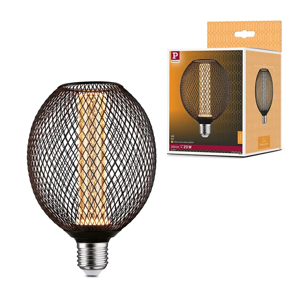 L’ampoule LED Metallic Glow associe une lumière dorée discrète à une coupelle métallique noire décorative. Grâce à la combinaison d’un cylindre intérieur gravé au laser et d’une fine structure grillagée, ces ampoules conviennent parfaitement aux suspensions ou aux lampes à poser avec douille E27. L’élément lumineux situé à l’extrémité du cylindre intérieur diffuse une lumière parfaitement dirigée vers le bas. Le design intemporel rencontre ici la technologie LED efficace et assure un éclairage d’ambiance confortable et doré.