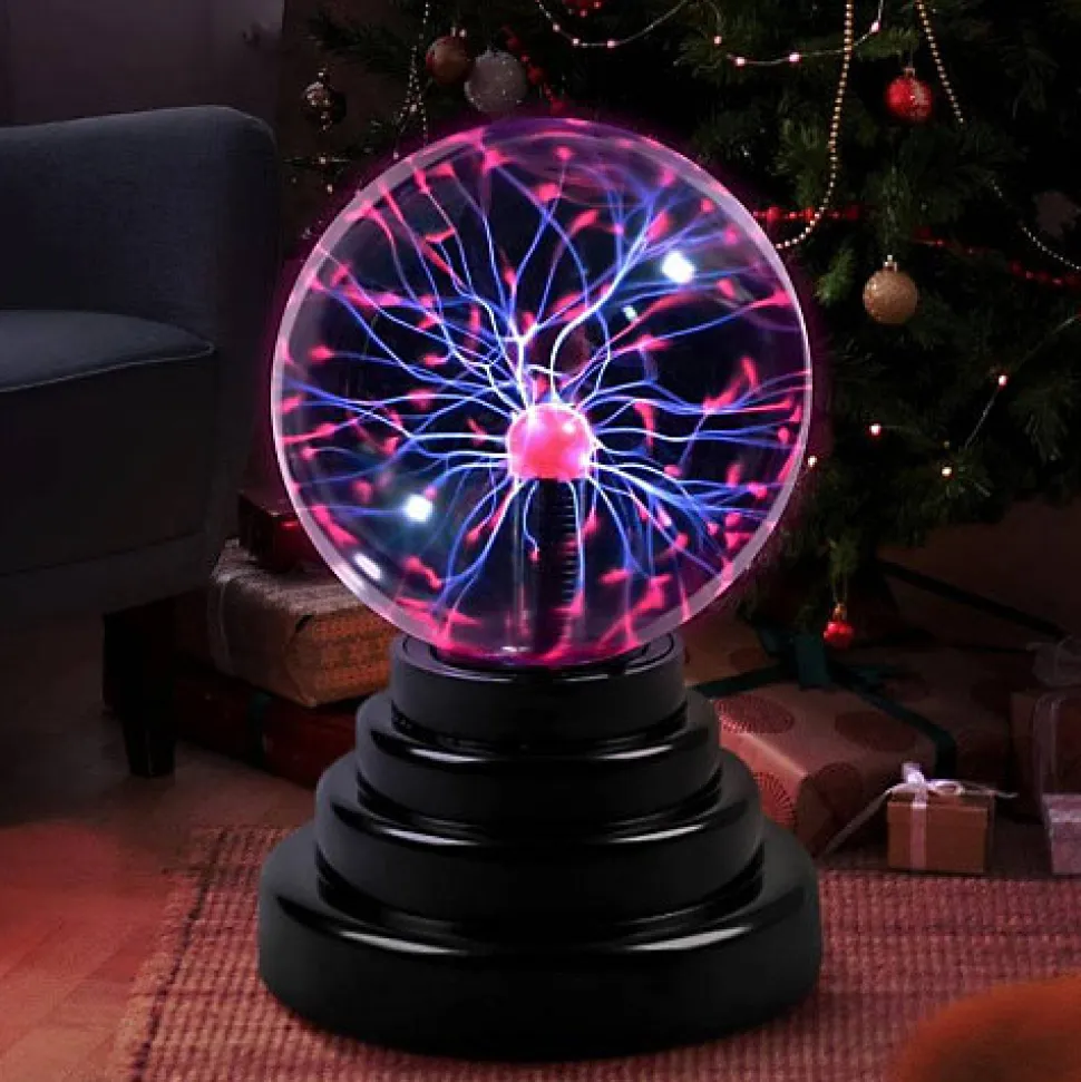 PING vous propose de découvrir un objet insolite !Un idée cadeau très lumineuse à petit prix !Grâce à la féérique création d’éclairs bleus et violets au sein d’une sphère transparente, vous créez une ambiance apaisante et positive avec un zest de magie.Idéal sur un bureau ou dans une chambre d’enfant pour éveiller et surprendre ! Un ravissement pour les yeux ! Vive le plasma !Caractéristiques principales :Convient comme lumière d’ambiance psychédélique et ensorcelanteCréation d’arcs électriques au sein d’une boule de verreBouton Marche/Arrêt sur le socleDesign modernePuissance : 1 WAlimentation : USB (câble fourni)Dimensions : 14 x 10 x 10 cm, – diamètre boule = 8 cm. poids (avec piles) :150 g