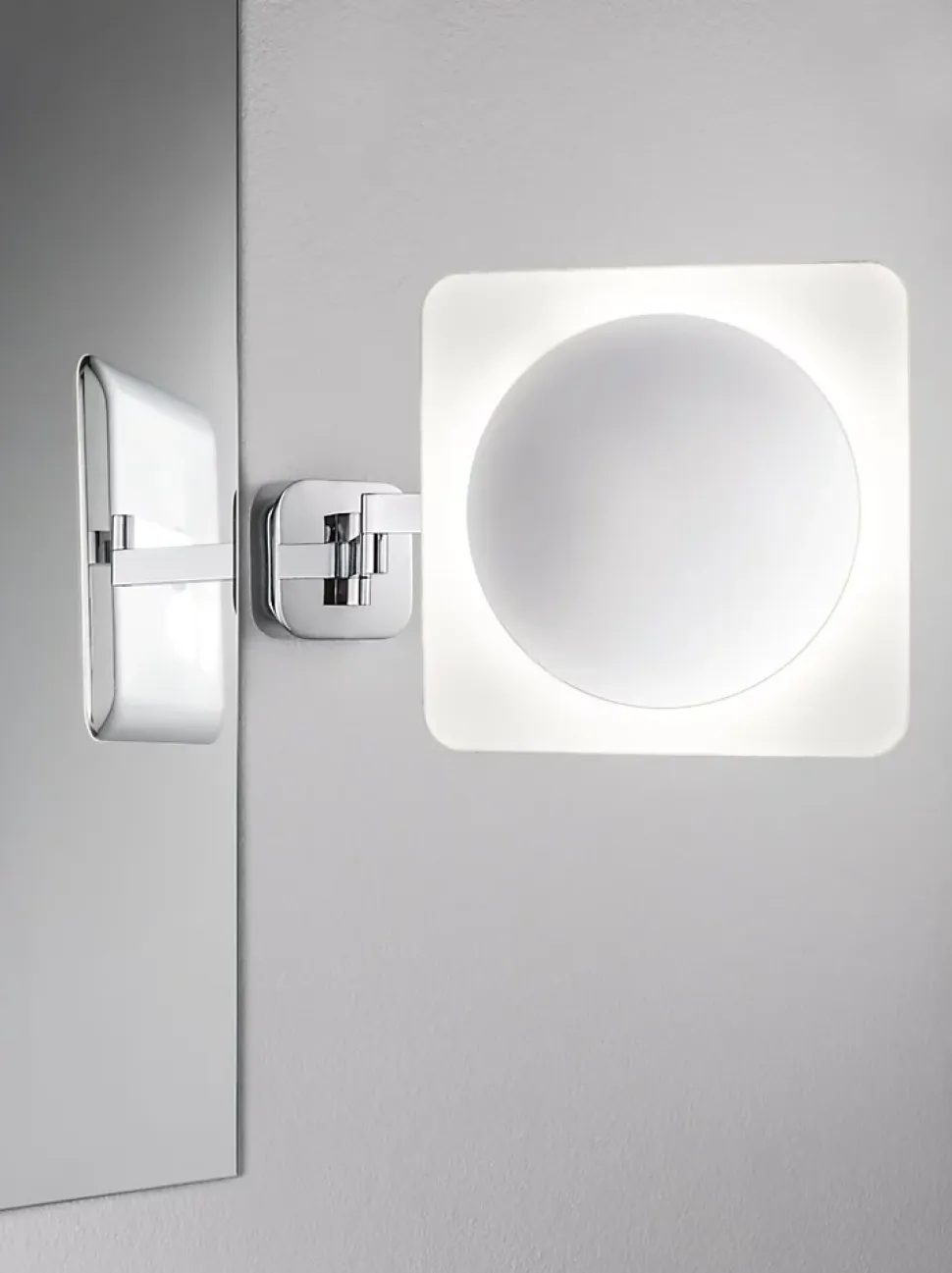Le miroir cosmétique éclairé Bela est une aide pratique dans la salle de bain ou sur la coiffeuse. Réglable dans différentes positions, Bela peut être ajusté en fonction des besoins pour le maquillage ou le rasage, grâce à l’articulation extensible. Tout aussi rapidement, le miroir se replie à plat contre le mur. Adapté aux salles de bain ou aux pièces humides grâce à sa protection contre les projections d’eau.