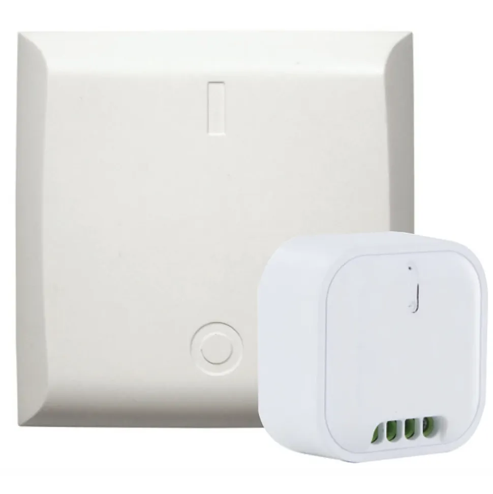 Module d’éclairage. Couleur(s) : blanc. Puissance : 1000W. Ampérage : 5A. Type de contrôle : On/Off. Fréquence radio : 433.92 MHz. Distance de transmission : 50m. Jusqu’à 32 commandes. Fonctionne avec une pile CR2032 3V. Utilisation intérieure uniquement. Garantie : 2 ans. Contenu : 1 module, 1 interrupteur sans fil et 1 pile CR2032 3V