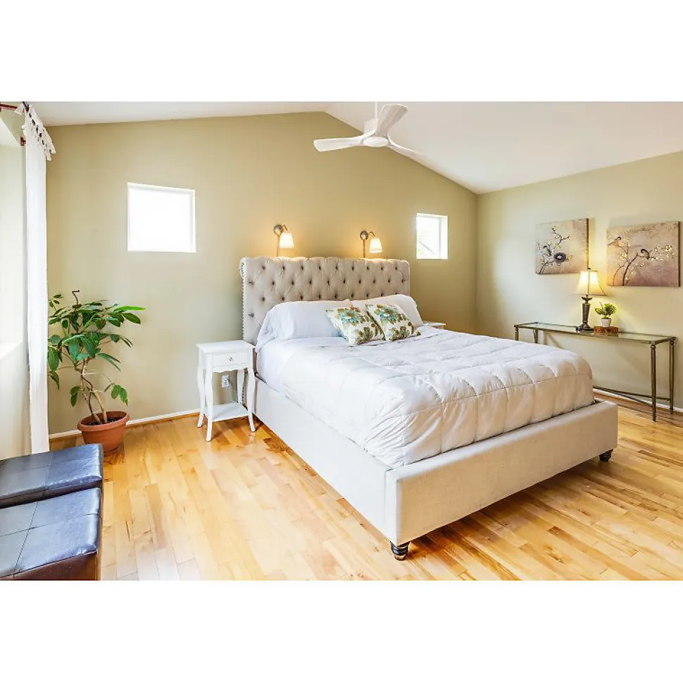 Modulo RegularModulo_DC4_P6Wi106Le Modulo est un ventilateur de plafond modulable et un destratificateur d’air, idéal pour une utilisation toute l’année. En été, il ventile efficacement, tandis qu’en hiver, il homogénéise la chaleur, réduisant ainsi vos coûts de chauffage et de climatisation.Performance et EfficacitéÉquipé d’un moteur à courant continu DC avec roulements à billes auto-lubrifiés, le Modulo assure un contrôle précis de la vitesse, une efficacité énergétique optimale, un fonctionnement silencieux, un entretien minimal et une longue durée de vie. Ce moteur DC garantit une consommation d’énergie réduite et un fonctionnement Hyper Silence, pratiquement inaudible jusqu’à la vitesse 3.Design et FlexibilitéLe Modulo est livré avec deux tiges de plafond de 12,5 cm et 25 cm, avec des options supplémentaires de 60, 120 et 180 cm. Les pales sont disponibles en ABS léger et résistant ou en bois, avec la possibilité de monter 2 ou 3 pales selon vos préférences. Le modèle actuel inclut des pales en bois de 106 cm, adaptées pour des pièces de 15 à 20 m² en été et 40 à 60 m² en hiver.Technologie et ConfortChaque ventilateur Modulo est fourni avec une télécommande et un récepteur FullFlow, permettant de contrôler toutes les fonctions : sélection des vitesses, allumage/extinction, variation de la lumière, minuterie, thermostat, Wi-Fi et inversion du sens de rotation des pales. Le thermostat ajuste automatiquement la vitesse en fonction de la température ambiante, offrant un confort optimal.Caractéristiq