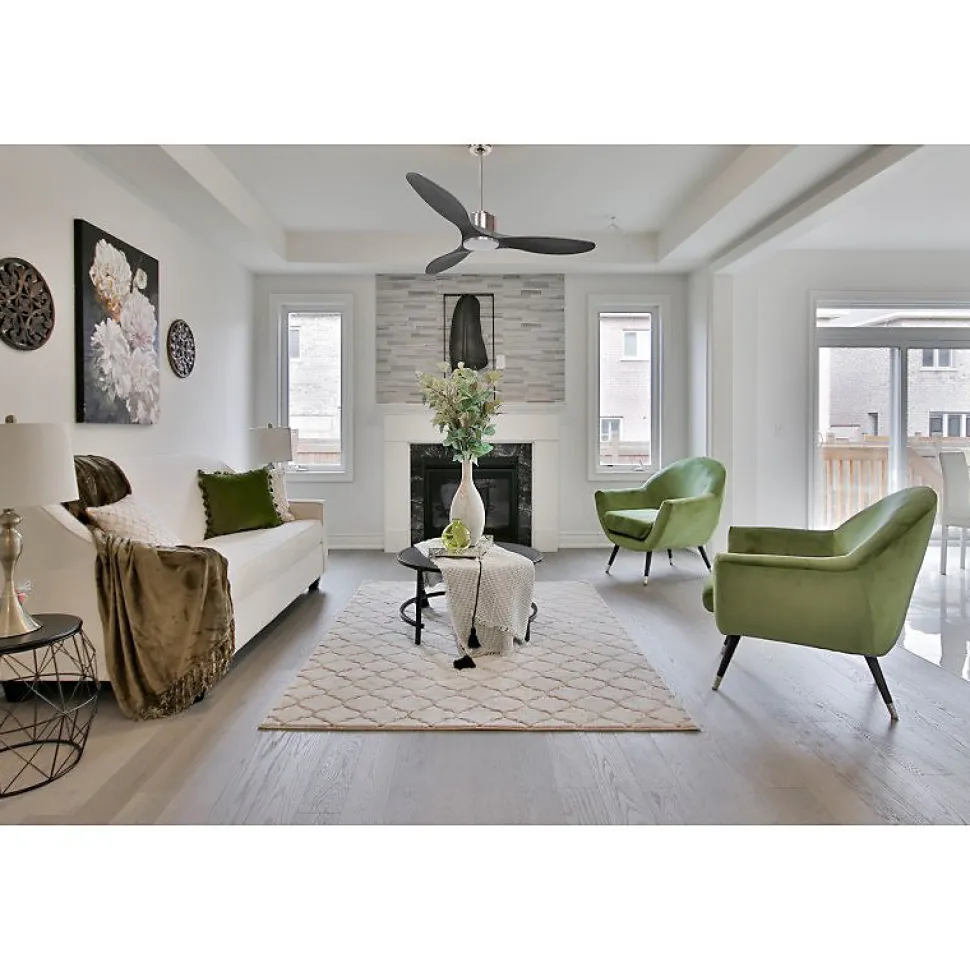 Modulo RegularModulo_DC3_P5Bk132Le Modulo est un ventilateur de plafond modulable et un destratificateur d’air, idéal pour ventiler en été et optimiser la chaleur en hiver. Ce régulateur thermique vous aide à réduire vos dépenses en chauffage et climatisation.Caractéristiques du MoteurLes ventilateurs Modulo sont équipés d’un moteur à courant continu DC avec roulements à billes auto-lubrifiés. Ce moteur assure un contrôle efficace de la vitesse, une consommation énergétique réduite, un fonctionnement silencieux, un entretien minimal et une longue durée de vie.Le moteur DC offre une consommation d’énergie faible et un fonctionnement Hyper Silence, pratiquement inaudible jusqu’à la vitesse 3. Idéal pour les espaces sensibles au bruit comme le salon, le bureau ou la chambre.Installation et OptionsLe Modulo est livré avec deux tiges de plafond de 12,5 cm et 25 cm, et des options de tiges de 60, 120 et 180 cm sont disponibles. Les pales sont disponibles en ABS léger et résistant ou en bois, avec la possibilité de monter 2 ou 3 pales selon vos préférences.Performance et UtilisationLe modèle actuel inclut un jeu de pales P5, adaptable avec un kit lumineux, couvrant des pièces de 25 à 40 m² en été et 60 à 90 m² en hiver. Taille de 132 cm, matériau en bois, puissance de 3450-12480 m³/h, RPM de 70-210, niveau sonore de 28-45 dB, consommation de 3-13 Watts.Fonctionnalités AvancéesChaque ventilateur Modulo est livré avec une télécommande et un récepteur FullFlow pour accéder à toutes les fon