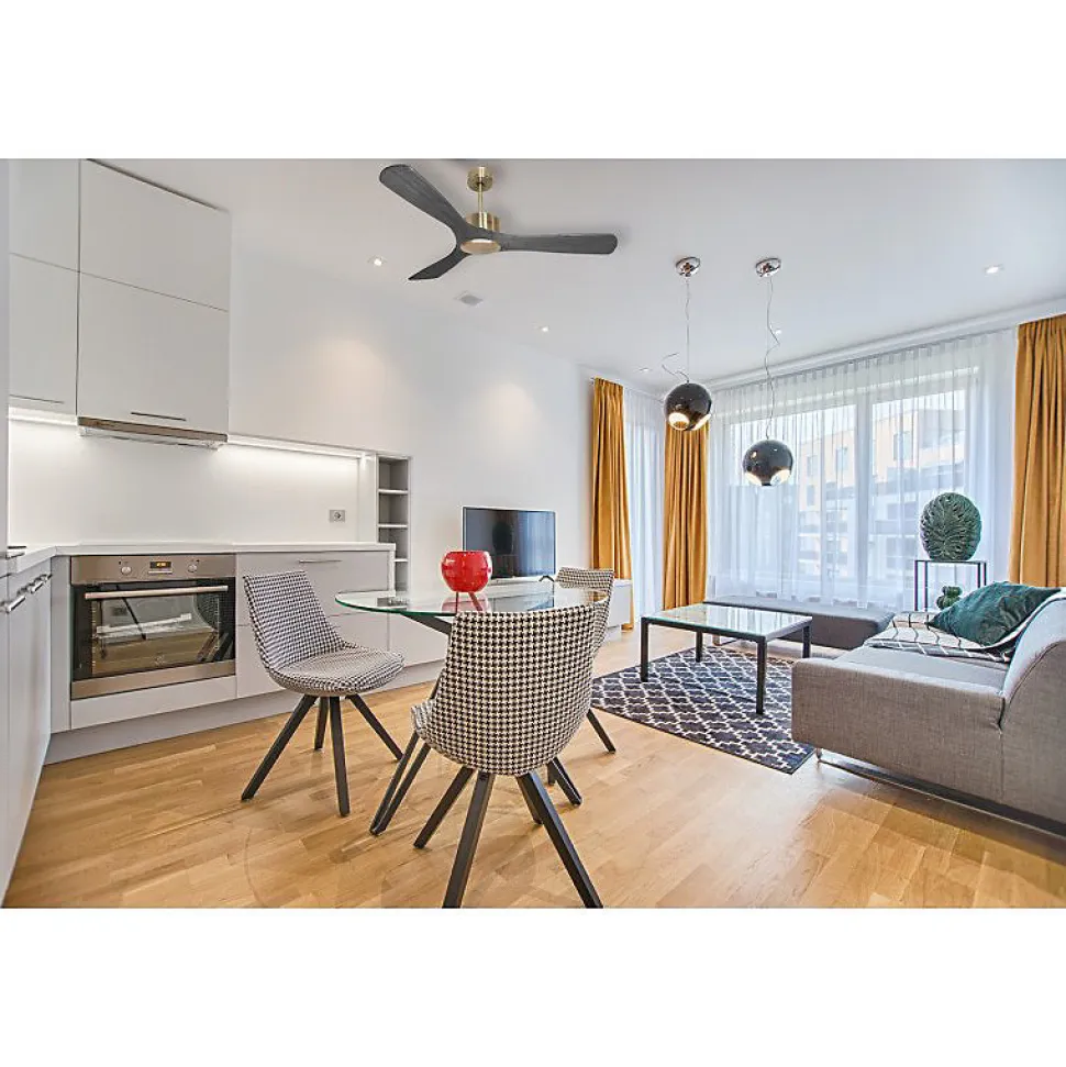 Modulo RegularModulo_DC5_P6Bk132Le ventilateur de plafond Modulo est un modèle modulable et performant, conçu pour optimiser la ventilation en été et la destratification en hiver. En tant que régulateur thermique, il contribue à réduire les coûts énergétiques liés au chauffage et à la climatisation.Technologie et PerformanceÉquipé d’un moteur à courant continu DC avec roulements à billes auto-lubrifiés, le Modulo assure un contrôle précis de la vitesse, une efficacité énergétique accrue, un fonctionnement silencieux, un entretien minimal et une longévité exceptionnelle. Le moteur DC garantit une consommation d’énergie réduite et un fonctionnement Hyper Silence, rendant le ventilateur pratiquement inaudible jusqu’à la vitesse 3. Idéal pour les espaces sensibles au bruit comme les salons, bureaux ou chambres.Options de Montage et DesignLe Modulo est livré avec deux tiges de plafond de 12,5 cm et 25 cm, avec des options supplémentaires de 60, 120 et 180 cm. Les pales sont disponibles en ABS léger et résistant ou en bois, et vous pouvez choisir de monter 2 ou 3 pales selon vos préférences. Le modèle actuel inclut des pales en bois de 132 cm, adaptées pour des pièces de 25 à 40 m² en été et 60 à 90 m² en hiver.Fonctionnalités AvancéesChaque ventilateur Modulo est fourni avec une télécommande et un récepteur FullFlow, permettant de contrôler les vitesses, l’éclairage, la minuterie, le thermostat, le Wi-Fi et l’inversion du sens de rotation des pales. Le thermostat ajuste automatiquement la vitesse en fonction de la température ambiante, avec des réglages allant de la vitesse 1 à 6 selon les degrés Celsius. Cette fonctionnalité peut