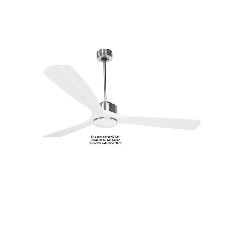 Modulo RegularModulo_DC3_P6Wi166_L1Le Modulo est un ventilateur de plafond modulable et un destratificateur d’air, conçu pour optimiser le confort thermique en été comme en hiver. En été, il ventile efficacement, tandis qu’en hiver, il redistribue la chaleur accumulée au plafond, réduisant ainsi vos besoins en chauffage et climatisation.Technologie et PerformanceÉquipé d’un moteur à courant continu (DC) avec roulements à billes auto-lubrifiés, le Modulo assure un contrôle précis de la vitesse, une efficacité énergétique remarquable, un fonctionnement silencieux, un entretien minimal et une longue durée de vie. Le moteur DC garantit une consommation d’énergie réduite et un fonctionnement Hyper Silence, pratiquement inaudible jusqu’à la vitesse 3.Installation et OptionsLe Modulo est livré avec deux tiges de plafond de 12,5 cm et 25 cm, avec des options de prolongateurs de 60, 120 et 180 cm. Les pales, disponibles en ABS léger et résistant ou en bois, sont configurables en 2 ou 3 unités selon vos préférences.Caractéristiques TechniquesLe modèle P6 est adapté pour des pièces de 30 à 60 m² en mode été et de 90 à 120 m² en mode hiver. Avec un diamètre de 166 cm, il offre une puissance de 5240 à 17680 m³/h, une vitesse de rotation de 65 à 170 RPM, un niveau sonore de 28 à 45 dB et une consommation de 8 à 40 Watts.Fonctionnalités AvancéesLa télécommande incluse permet de contrôler toutes les fonctions : sélection des vitesses, allumage/extinction et variation de la lumière, minuterie, thermostat