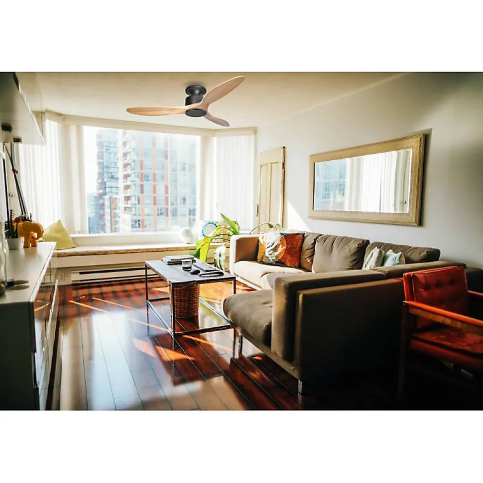 Modulo Low ProfileModulo_Low Profile DC1_P5SwDécouvrez le Modulo Low Profile, la version spécialement conçue pour les plafonds bas du ventilateur modulable Modulo. Avec une hauteur totale de seulement 19,5 cm, ce modèle est parfait pour ventiler les espaces restreints tout en complétant la gamme Modulo Regular.Design et MatériauxLe moteur du Modulo Low Profile est robuste et présente une finition laquée élégante. Il est compatible avec des pales en résine ABS, un matériau résistant aux variations d’humidité et de température, léger et facile à entretenir.Éclairage et ConfortLe ventilateur est équipé d’un kit lumineux avec une LED dimmable, offrant trois tons de lumière ajustables selon vos envies et les moments de la journée. Le Modulo Low Profile contribue ainsi à votre confort thermique, que ce soit dans votre salon, chambre ou espace détente.Performance et SilenceÉquipé d’un moteur à courant continu DC avec roulements à billes auto-lubrifiés, ce ventilateur assure une efficacité énergétique, un fonctionnement silencieux et une longue durée de vie. Le mode Hyper Silence garantit une utilisation presque inaudible jusqu’à la vitesse 3, idéal pour les pièces sensibles au bruit.Options de PalesLe Modulo Low Profile peut être équipé de 2 ou 3 pales, disponibles en ABS ou bois, selon vos préférences. Le modèle actuel inclut : P5 – Kit lumineux adaptable, pour des surfaces de 20 à 40 m² en été et de 60 à 90 m² en hiver Taille 132 cm, matériau Bois, Puissance 3450-12480 m³/h, RPM 70-210, Niveau sonore 28-51 dB, Consommation 3-21 WattsFonctionnalités Avan