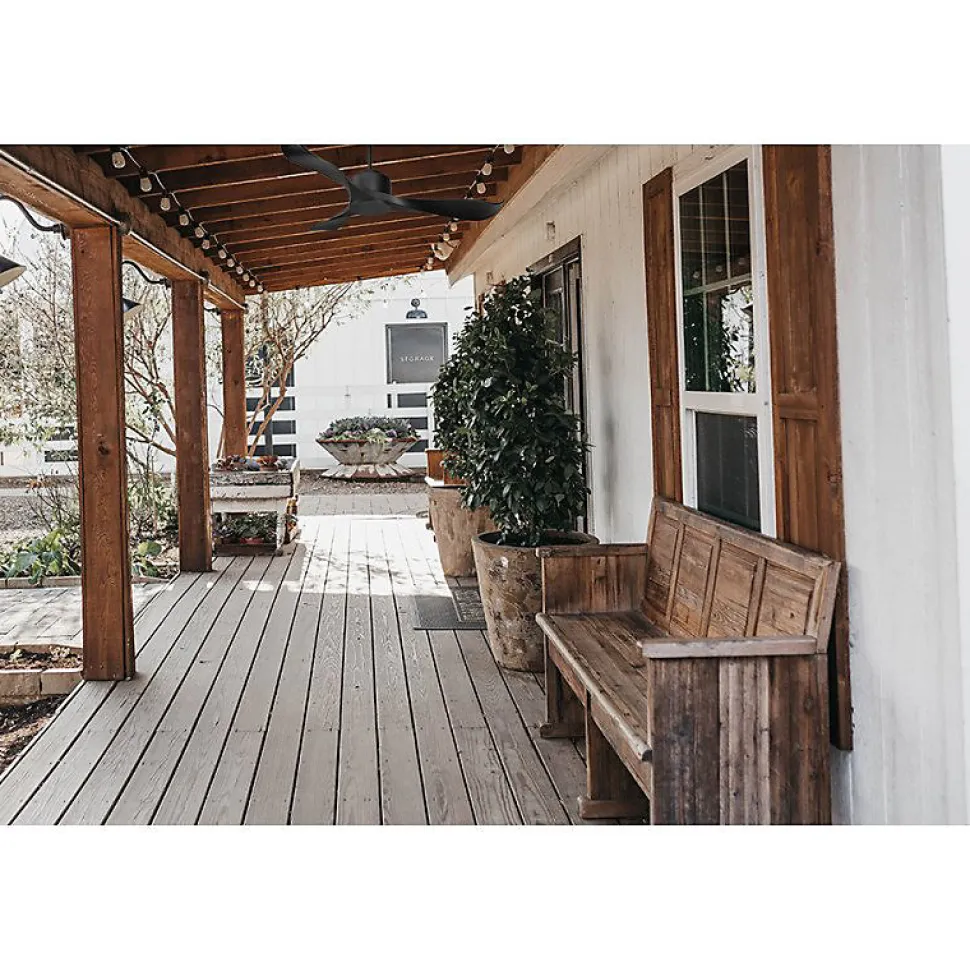 Modulo Regular Exterior IP44Modulo_DC1ext_P2BkDécouvrez le Modulo Regular Exterior, un ventilateur de plafond modulable conçu pour vos espaces extérieurs. Idéal pour ventiler vos terrasses couvertes durant l’été, ce modèle est équipé du kit IPX3 qui permet une installation en extérieur.CaractéristiquesLe moteur du Modulo Regular Exterior est protégé par une série de joints faciles à installer, garantissant l’étanchéité du moteur et des composants électroniques. Les pales en résine ABS, résistantes aux variations d’humidité et de température, sont parfaitement adaptées pour un usage extérieur.En option, un kit lumineux étanche est disponible, offrant une lumière dimmable pour un confort supplémentaire. Peu de ventilateurs extérieurs proposent cette fonctionnalité, faisant du Modulo Regular un choix unique pour améliorer le confort thermique de vos espaces extérieurs.En plus de rafraîchir vos zones de détente, ce ventilateur agit comme une barrière contre les insectes, tels que les moustiques, qui ne peuvent voler sous un ventilateur en marche. Profitez de soirées estivales agréables et sans nuisibles.Performance et EfficacitéÉquipé d’un moteur à courant continu DC avec roulements à billes auto-lubrifiés, le Modulo Regular Exterior assure un contrôle précis de la vitesse, une efficacité énergétique optimale, un fonctionnement silencieux et une longue durée de vie. Les ventilateurs de plafond Hyper <a href= »https://www.ventilateurs-plafond.com/fr/s/1/ventilateurs-de-plafond-hyper-sil