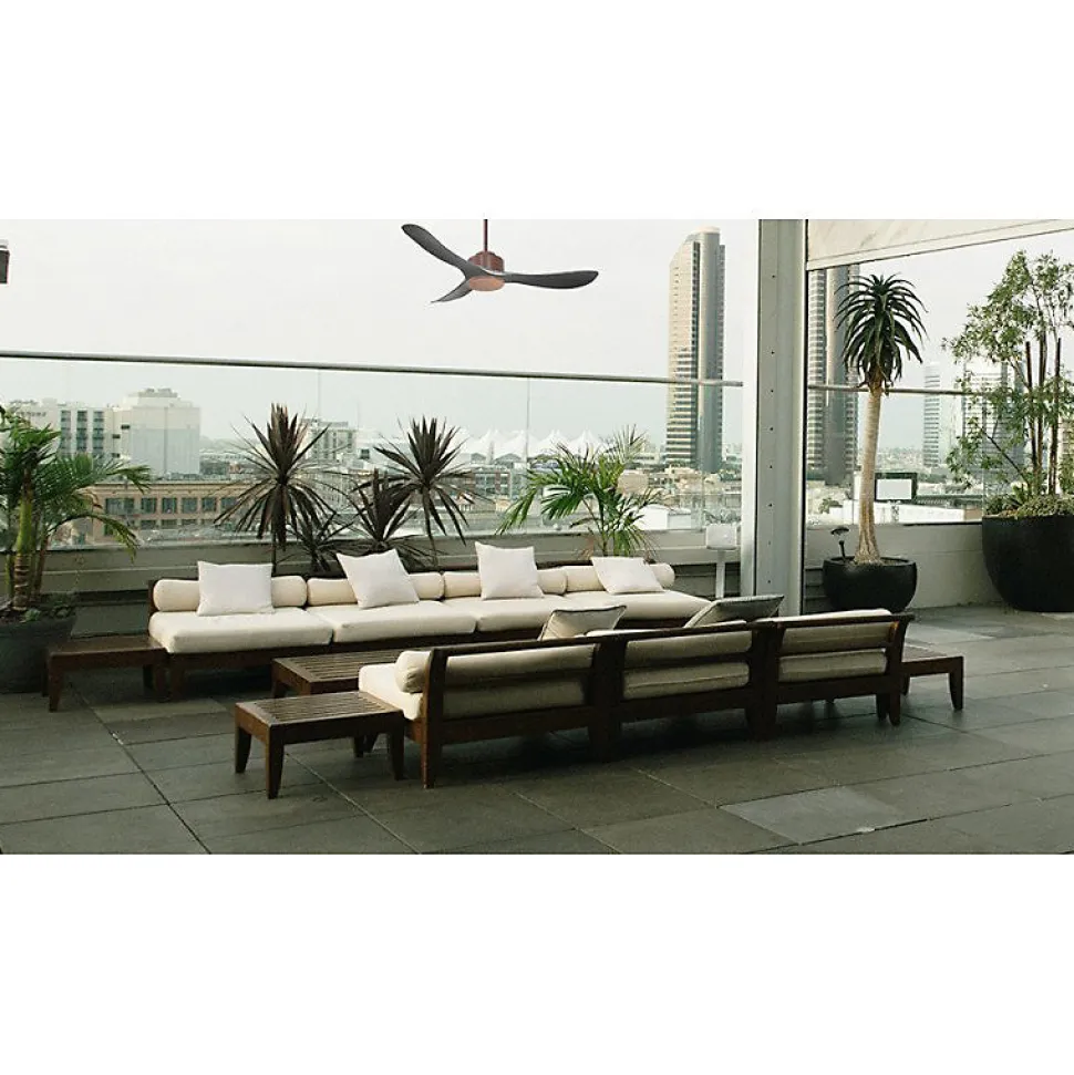 Modulo Regular Exterior IP44Modulo_DC2ext_P3BkDécouvrez le Modulo Regular Exterior, un ventilateur de plafond spécialement conçu pour l’extérieur, idéal pour ventiler vos terrasses couvertes durant l’été. Grâce au kit IPX3, il s’installe facilement en extérieur, garantissant une protection optimale contre les éléments.CaractéristiquesLe moteur du Modulo Regular est équipé de joints d’étanchéité simples à installer, protégeant efficacement le moteur et les composants électroniques. Les pales en résine ABS, résistantes aux variations d’humidité et de température, sont parfaitement adaptées à l’extérieur.Options et FonctionnalitésEn option, un kit lumineux étanche est disponible, permettant d’ajouter un éclairage dimmable, une caractéristique rare pour un ventilateur d’extérieur. Ce ventilateur assure également une barrière contre les insectes, rendant vos soirées estivales plus agréables.Performance et EfficacitéLes ventilateurs Modulo sont équipés d’un moteur à courant continu DC avec roulements à billes auto-lubrifiés, offrant un contrôle précis de la vitesse, une efficacité énergétique remarquable, un fonctionnement silencieux et une longue durée de vie. Le modèle est Hyper Silence, pratiquement inaudible jusqu’à la vitesse 3.Installation et AccessoiresLe Modulo est livré avec deux tiges