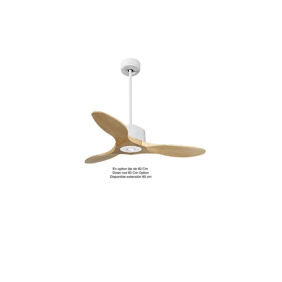 Modulo Regular RingModulo_DC4_P5Sw106_RingWiLe ventilateur de plafond Modulo est un modèle modulable qui agit également comme un destratificateur d’air. Il assure une ventilation efficace en été et une redistribution de la chaleur en hiver, ce qui en fait un véritable régulateur thermique. Grâce à ce système, vous pouvez réaliser des économies sur vos factures de chauffage et de climatisation.Caractéristiques du MoteurLes ventilateurs Modulo sont équipés d’un moteur à courant continu (DC) avec des roulements à billes auto-lubrifiés. Ce moteur offre une efficacité énergétique exceptionnelle, un fonctionnement silencieux, un entretien minimal et une longue durée de vie. Le moteur DC garantit une faible consommation d’énergie et un fonctionnement Hyper Silence, pratiquement inaudible jusqu’à la vitesse 3. Ce ventilateur est idéal pour les espaces sensibles au bruit comme les salons, bureaux ou chambres.Options de Montage et PalesLe Modulo est livré avec deux tiges de plafond de 12,5 cm et 25 cm, avec des options supplémentaires de tiges de 60, 120 et 180 cm. Les pales sont disponibles en ABS léger et résistant ou en bois, et vous pouvez choisir de monter 2 ou 3 pales selon vos préférences. Le modèle actuel comprend des pales en bois de 106 cm, adaptées pour des pièces de 15 à 20 m² en mode été et 40 à 60 m² en mode hiver.Fonctionnalités AvancéesChaque ventilateur Modulo est livré avec une télécommande et un récepteur FullFlow, permettant de contrôler toutes les fonctions : sélection des vitesses, allumage/extinction,