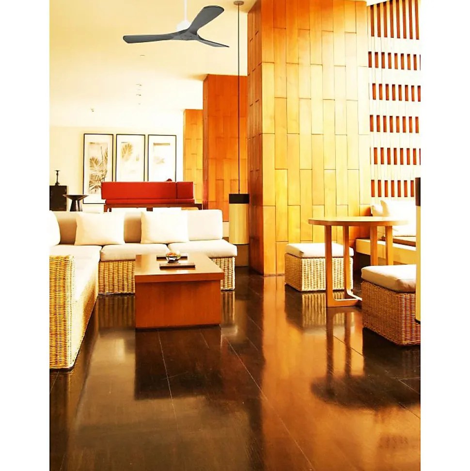 Modulo garantie 10 ans.Modulo Slim DC4_P6ClsdBk132Découvrez le Modulo Slim, la version affinée du Modulo Regular, offrant les mêmes performances techniques avec un design plus discret. Ce ventilateur de plafond est également un déstratificateur d’air, intégrant un moteur DC pour un fonctionnement silencieux et économe en énergie, idéal pour un confort optimal.CaractéristiquesLe moteur DC du Modulo Slim assure une gestion efficace de la vitesse, un fonctionnement quasiment inaudible jusqu’à la vitesse 3, et une longue durée de vie. Au-delà, seul le mouvement de l’air peut être perçu. Ce ventilateur est parfait pour les espaces sensibles au bruit comme les salons, bureaux ou chambres.Le Modulo Slim est livré avec deux tiges de plafond de 12,5 cm et 25 cm, avec des options de prolongateurs de 60, 120 et 180 cm disponibles. Les pales, en ABS léger et résistant ou en bois, se montent par jeu de trois, offrant une flexibilité d’installation avec 2 ou 3 pales selon vos préférences.Le modèle actuel inclut des pales fermées (P6-closed blades), non compatibles avec un kit lumineux, adaptées pour des pièces de 25 à 40 m² en mode été et 60 à 90 m² en mode hiver. Le ventilateur mesure 132 cm de diamètre, avec une puissance de 3850-12990 m³/h, une vitesse de rotation de 70-210 RPM, un niveau sonore de 28-45 dB, et une consommation de 3-21 Watts.FonctionnalitésChaque ventilateur de la série Modulo est équipé d’une télécommande et d’un récepteur FullFlow, permettant de contrôler les vitesses, l’allumage/extinction, la minuterie, le thermostat, le Wi-Fi, et l’inversion du sens de rotation des pales. Le thermostat ajuste automatiquement la vitesse en