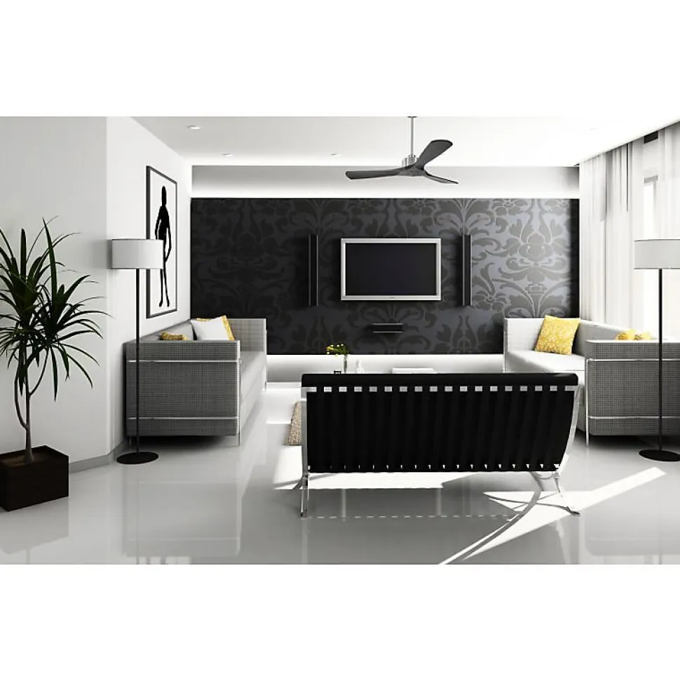 Modulo garantie 10 ans.Modulo Slim DC3_P6ClsdBk132Découvrez le Modulo Slim, la version affinée du Modulo Regular, offrant les mêmes performances avec un design plus discret. Ce ventilateur de plafond est également un déstratificateur d’air, combinant efficacité énergétique et silence absolu grâce à son moteur DC.CaractéristiquesLe moteur DC du Modulo Slim assure un contrôle précis de la vitesse, un fonctionnement silencieux et une longue durée de vie. Il est pratiquement inaudible jusqu’à la vitesse 3, ce qui le rend idéal pour les espaces sensibles au bruit comme les salons, bureaux ou chambres.Le Modulo Slim est livré avec deux tiges de plafond de 12,5 cm et 25 cm, avec des options de prolongateurs de 60, 120 et 180 cm. Les pales, disponibles en ABS léger et résistant ou en bois, peuvent être montées en configuration de 2 ou 3 pales selon vos préférences. Le modèle P6 avec pales fermées est adapté pour des pièces de 25 à 40 m² en été et 60 à 90 m² en hiver.Spécifications Techniques Taille : 132 cm Matériau : Bois Puissance : 3850-12990 m³/h RPM : 70-210 Niveau sonore : 28-45 dB Consommation : 3-21 WattsChaque ventilateur de la série Modulo est équipé d’une télécommande et d’un récepteur FullFlow, permettant de contrôler les vitesses, l’allumage/extinction, la minuterie, le thermostat, le Wi-Fi et le sens de rotation des pales.Fonctionnalités AvancéesLe thermostat