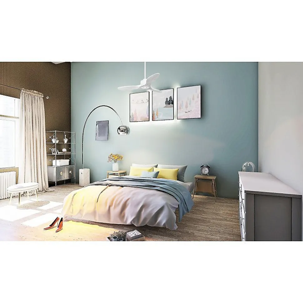 Modulo Slim RingDC4Slim_P5Wi106_RingWiLe Modulo Slim Ring est bien plus qu’un simple ventilateur de plafond. C’est un appareil modulable et un destratificateur d’air, idéal pour la ventilation estivale et la récupération de chaleur en hiver. Ce modèle polyvalent se distingue par son design moderne et ses fonctionnalités avancées.En tant que régulateur thermique, ce ventilateur vous permet de réaliser des économies d’énergie sur le chauffage et la climatisation. Tous les moteurs Modulo sont équipés d’un moteur à courant continu DC, fabriqué entièrement en cuivre avec des roulements à billes auto-lubrifiés, garantissant un fonctionnement silencieux et fiable.Grâce à son moteur DC, le Modulo Slim Ring offre un contrôle précis de la vitesse avec six niveaux disponibles. Ces moteurs sont également très économes en énergie et bénéficient de la technologie Hyper Silence, assurant un fonctionnement quasiment inaudible jusqu’à la vitesse 3.Le Modulo Slim est fourni avec deux tiges de plafond de 12,5 cm et 25 cm, avec des options supplémentaires de tiges de 60, 120 et 180 cm disponibles.Caractéristiques des PalesLes pales de la série Modulo sont disponibles en ABS léger et résistant ou en bois. Vous pouvez choisir d’installer 2 ou 3 pales selon vos préférences. Le modèle actuel est équipé de pales P5, adaptées pour des pièces de 10 à 20 m²