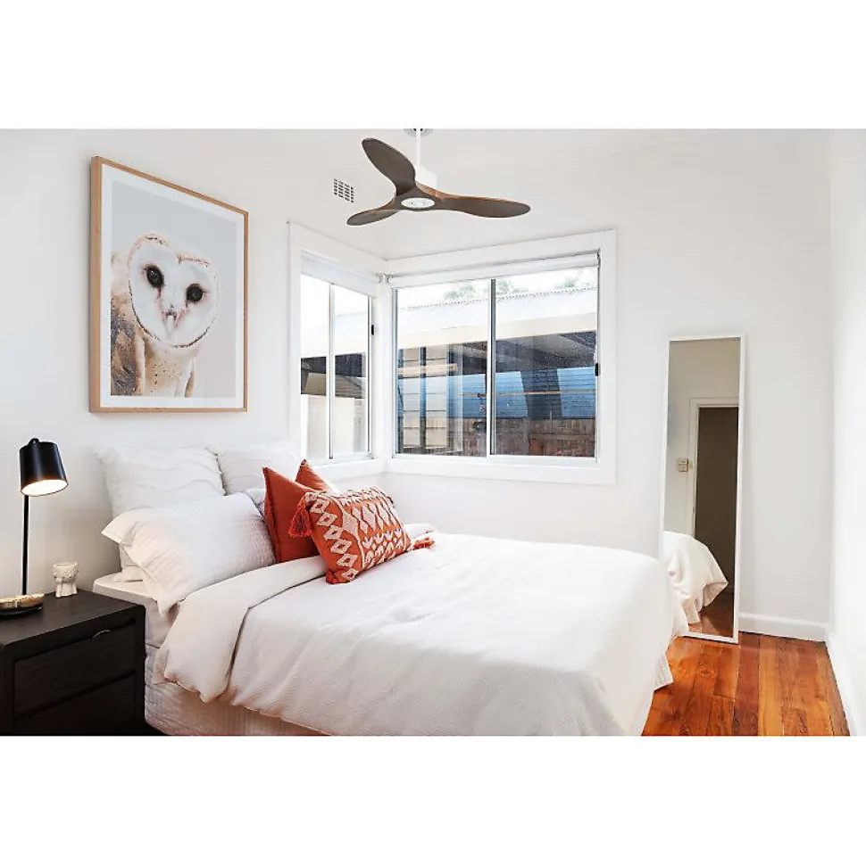 Modulo Slim RingDC4Slim_P5Dw106_RingWiLe Modulo Slim Ring est bien plus qu’un simple ventilateur de plafond. C’est un appareil modulable qui agit également comme un destratificateur d’air, optimisant la ventilation en été et la récupération de chaleur en hiver. Ce produit polyvalent allie design moderne et fonctionnalité avancée, vous permettant de réaliser des économies sur vos factures de chauffage et de climatisation.Technologie et PerformanceChaque moteur de plafond Modulo est équipé d’un moteur à courant continu (DC) 100% cuivre avec des roulements à billes auto-lubrifiés, garantissant un fonctionnement silencieux et sans souci. Le moteur DC offre un contrôle précis de la vitesse avec ses 6 niveaux, tout en étant économe en énergie et Hyper Silence. Jusqu’à la vitesse 3, le ventilateur est pratiquement inaudible, et même aux vitesses supérieures, seul le mouvement de l’air est perceptible.Installation et OptionsLe Modulo Slim est livré avec deux tiges de plafond de 12,5 cm et 25 cm, avec des options supplémentaires de tiges de 60, 120 et 180 cm. Les pales, disponibles en ABS léger et résistant ou en bois, peuvent être montées en configurations de 2 ou 3 pales selon vos préférences. Le modèle P5 est idéal pour des pièces de 10 à 20 m² en été et de 40 à 60 m² en hiver.Caractéristiques Techniques Taille : 106 cm Matériau : Bois Puissanc