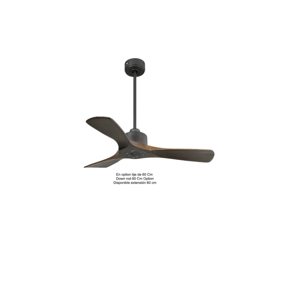 Modulo Slim RingDC1Slim_P6Dw106_RingBkLe Modulo Slim Ring est bien plus qu’un simple ventilateur de plafond. Ce modèle modulable agit également comme un destratificateur d’air, offrant une ventilation efficace en été et une récupération de chaleur en hiver. Son design moderne et ses fonctionnalités avancées en font un choix polyvalent pour toute saison.Performance et Économie d’ÉnergieÉquipé d’un moteur à courant continu (DC) entièrement en cuivre avec des roulements à billes auto-lubrifiés, le Modulo Slim Ring assure un fonctionnement silencieux et sans tracas. Ce moteur permet un contrôle précis de la vitesse avec ses 6 niveaux, tout en garantissant une faible consommation d’énergie. Les ventilateurs de plafond Hyper Silence, comme celui-ci, sont pratiquement inaudibles jusqu’à la vitesse 3.Options de Montage et PersonnalisationLe Modulo Slim est livré avec deux tiges de plafond de 12,5 cm et 25 cm, avec des options supplémentaires de 60, 120 et 180 cm disponibles. Les pales, disponibles en ABS ou en bois, peuvent être montées en configurations de 2 ou 3 pales selon vos préférences. Le modèle actuel inclut le jeu de pales P6, idéal pour des pièces de 10 à 20 m² en mode été et de 40 à 60 m² en mode hiver.Caractéristiques Techniques Surface de portée : Hiver 30-60 m², Été 10-20 m² Taille : 106 cm Matériau : Bois Puissance : 245