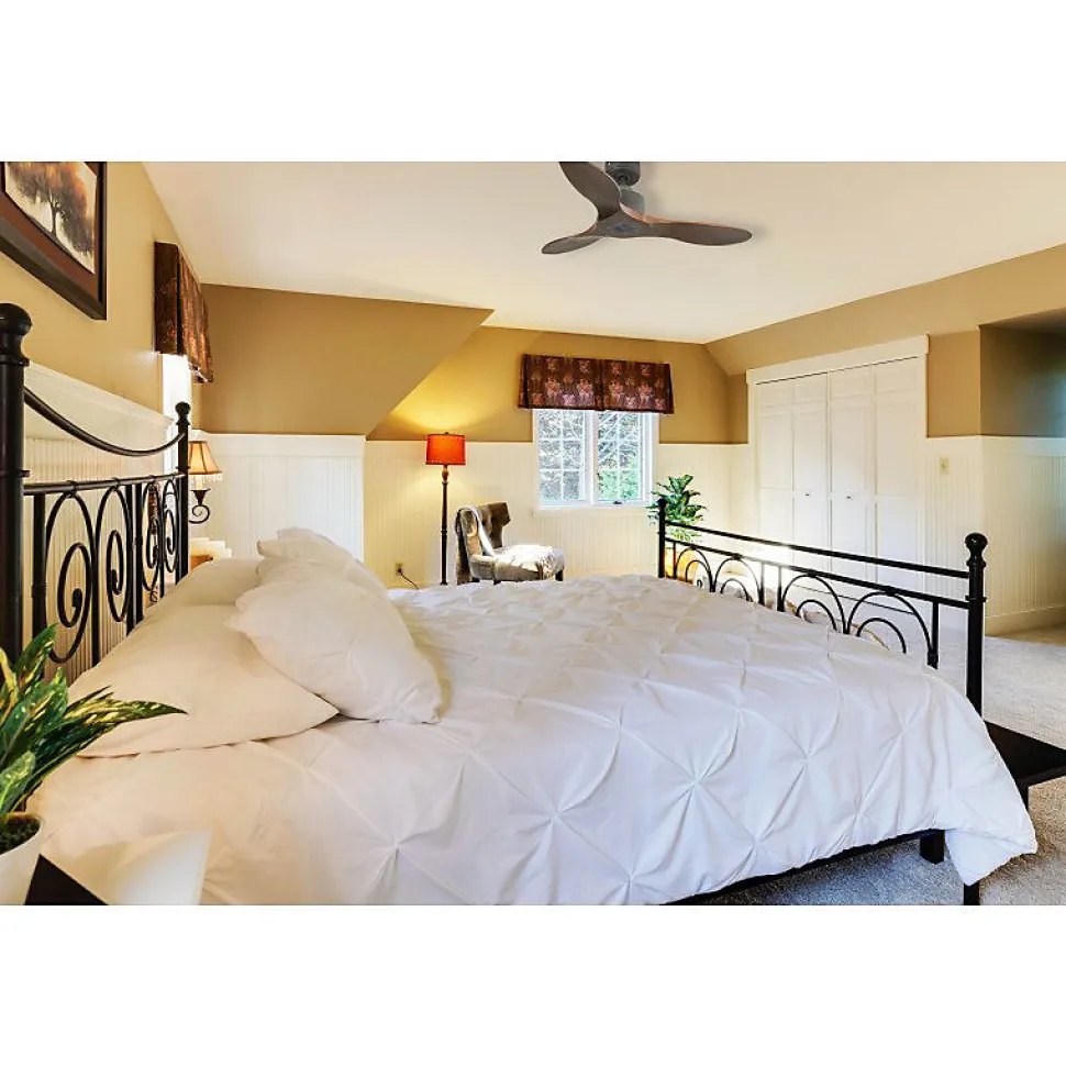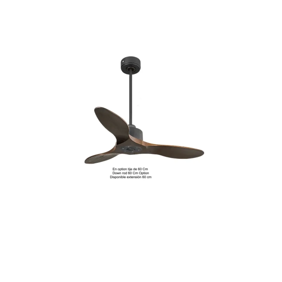 Modulo Slim RingDC1Slim_P5Dw106_RingBkLe Modulo Slim Ring est un ventilateur de plafond modulable et un destratificateur d’air, idéal pour la ventilation estivale et la récupération de chaleur en hiver. Ce produit polyvalent allie design moderne et fonctionnalité, offrant une solution efficace pour réduire vos dépenses énergétiques en chauffage et climatisation.Équipé d’un moteur à courant continu DC, entièrement en cuivre et doté de roulements à billes auto-lubrifiés, le Modulo Slim Ring garantit un fonctionnement silencieux et fiable. Ce moteur permet un contrôle précis de la vitesse avec ses 6 niveaux, et assure une faible consommation d’énergie tout en étant extrêmement silencieux, comme le décrit notre gamme Hyper Silence. Jusqu’à la vitesse 3, le ventilateur est pratiquement inaudible, et seul le mouvement de l’air est perceptible à des vitesses plus élevées.Le Modulo Slim est livré avec deux tiges de plafond de 12,5 cm et 25 cm, avec des options supplémentaires de 60, 120 et 180 cm disponibles. Les pales, composées de 3 unités en ABS léger et résistant ou en bois, peuvent être montées selon vos préférences, avec 2 ou 3 pales possibles.Ce modèle est idéal pour des pièces de 10 à 20 m² en mode été et de 40 à 60 m² en mode