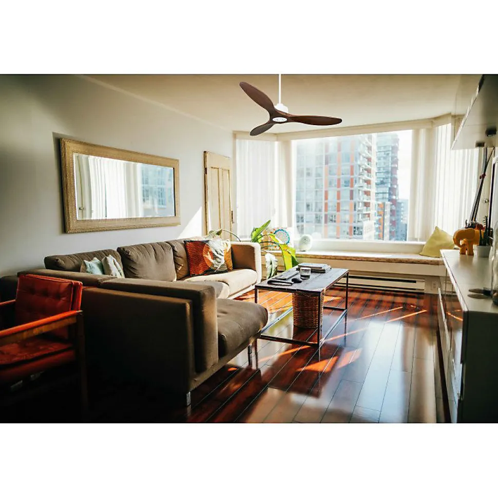Modulo Slim RingDC4Slim_P5Dw132_RingWiLe Modulo Slim Ring est un ventilateur de plafond innovant et modulable, conçu pour offrir une ventilation efficace en été et récupérer la chaleur en hiver. Ce modèle polyvalent allie design moderne et fonctionnalités avancées, faisant de lui un régulateur thermique idéal pour réduire vos coûts de chauffage et de climatisation.Équipé d’un moteur à courant continu DC, entièrement fabriqué en cuivre et doté de roulements à billes auto-lubrifiés, ce ventilateur assure un fonctionnement silencieux et fiable. Le moteur DC permet un contrôle précis de la vitesse avec ses 6 niveaux, garantissant une faible consommation d’énergie et un fonctionnement Hyper Silence. Jusqu’à la vitesse 3, le ventilateur est pratiquement inaudible.CaractéristiquesLe Modulo Slim est livré avec deux tiges de plafond de 12,5 cm et 25 cm, avec des options supplémentaires de 60, 120 et 180 cm. Les pales, disponibles en ABS léger et résistant ou en bois, peuvent être montées en configuration de 2 ou 3 pales selon vos préférences. Le modèle P5 est idéal pour des pièces de 25 à 40 m² en été et de 60 à 90 m² en hiver. Les dimensions incluent un diamètre de 132 cm, une puissance de 3450-12480 m3/h, une vitesse de rotation de 70-210 RPM, un niveau sonore de 28-48 dB et une consommation de 3-21 Watts.Fonctionnalités AvancéesChaque ventilateur de la série Modulo est accompagné d’une télécommande permettant de contrôler toutes les fonctions : sélection des vitesses, allumage/extinction, variation de l