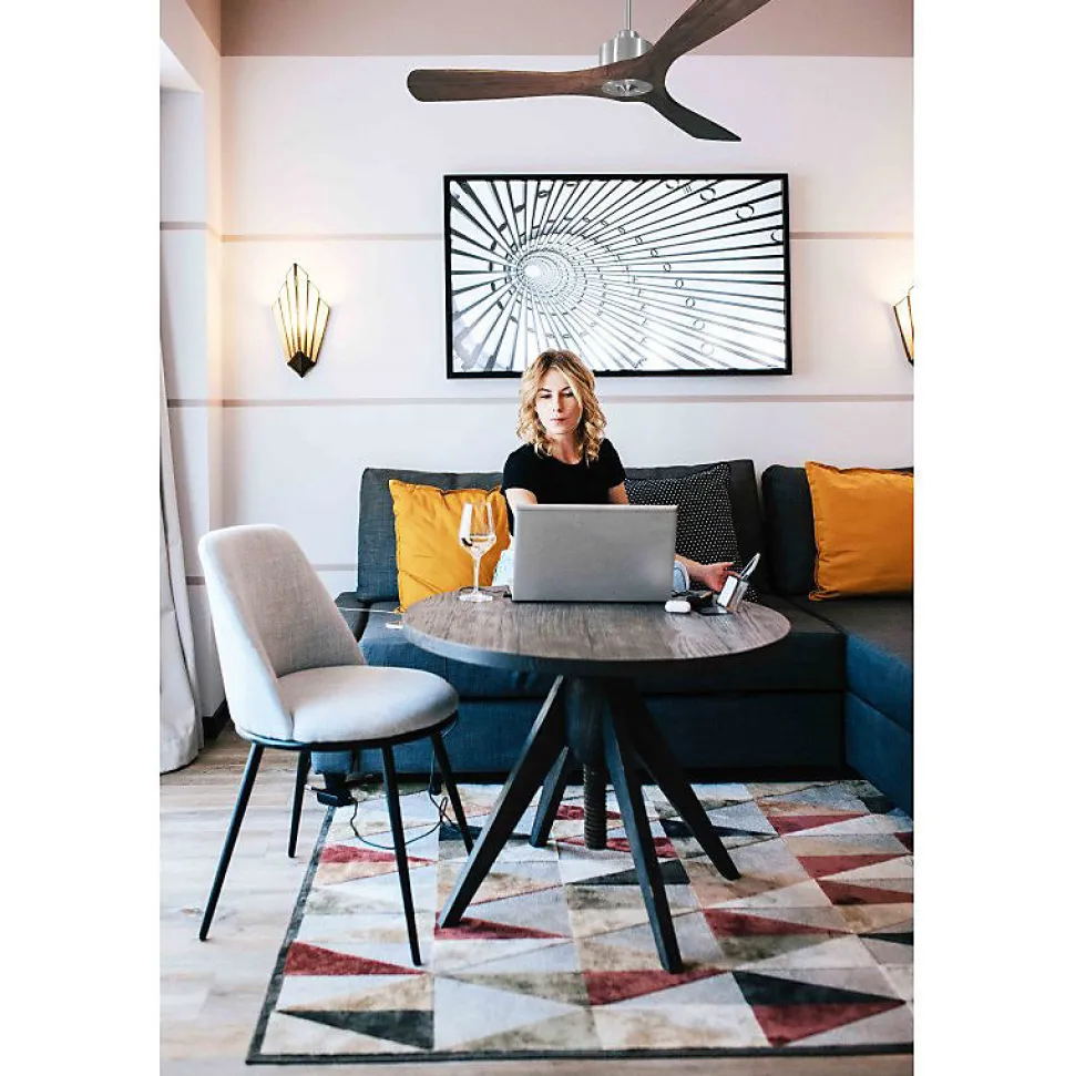 Modulo Slim RingDC3Slim_P6Dw132_RingChLe Modulo Slim Ring est un ventilateur de plafond modulable et un destratificateur d’air, idéal pour la ventilation estivale et la récupération de chaleur en hiver. Ce produit polyvalent se distingue par son design moderne et sa fonctionnalité exceptionnelle.Bien plus qu’un simple ventilateur, il agit comme un régulateur thermique, vous aidant à réduire vos coûts de chauffage et de climatisation.Caractéristiques du MoteurLes moteurs de plafond Modulo sont équipés d’un moteur à courant continu (DC), fabriqué à 100 % en cuivre avec des roulements à billes auto-lubrifiés, garantissant un fonctionnement silencieux et sans souci. Le moteur DC offre un contrôle précis de la vitesse avec 6 niveaux, tout en consommant peu d’énergie. Ces ventilateurs sont Hyper Silence, pratiquement inaudibles jusqu’à la vitesse 3.Installation et OptionsLe Modulo Slim est livré avec deux tiges de plafond de 12,5 cm et 25 cm, avec des options de tiges supplémentaires de 60, 120 et 180 cm. Les pales, disponibles en ABS léger et résistant ou en bois, se montent par jeu de 3, avec la possibilité d’installer 2 ou 3 pales selon vos préférences. Le modèle P6 est conçu pour des pièces de 25 à 40 m² en mode été et de 60 à 90 m² en mode hiver.Spécifications Techniques Taille : 132 cm Matériau : Bois Puissance : 3450-12480
