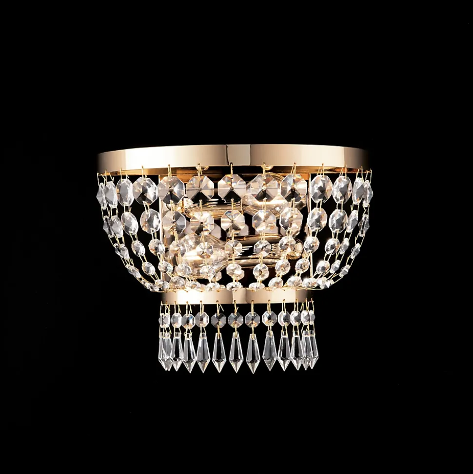 Mozart – Applique en fer et laiton doré avec strass, 2 lumièresMesures du produit : H.22 – L.27 – P.14Nombre d’ampoules : 2xE14Puissance : 42 watts maximumFinition : Or poliCe produit est fabriqué artisanalement. De légères imperfections visuelles sont considérées comme des caractéristiques naturelles du travail manuel