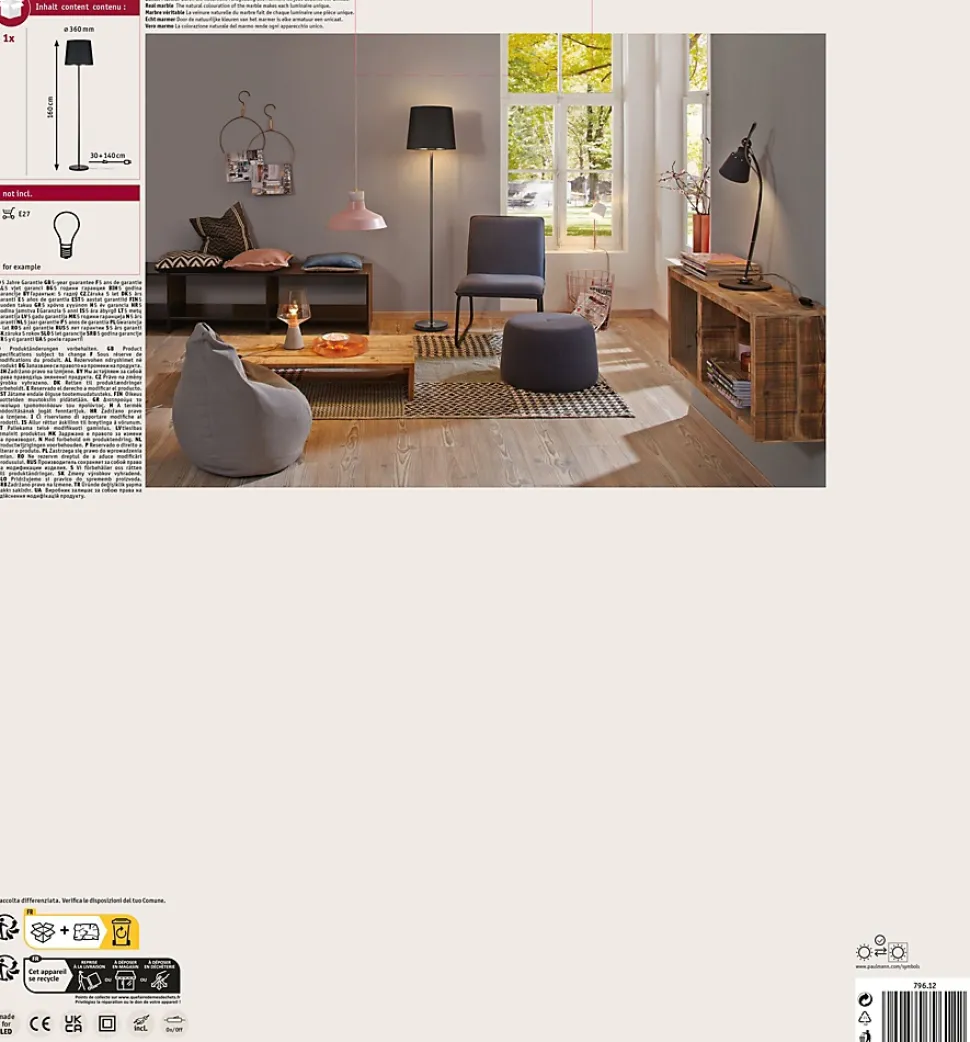Un mélange de matériaux moderne associant du marbre véritable et du tissu, du cuivre tendance et du noir intemporel : les lampadaires Neordic Enja incarnent l’éclairage confortable à la manière nordique. Quand poser des touches de lumière dans vos pièces à vivre devient un jeu d’enfant. Créez une ambiance personnalisée en les combinant avec d’autres séries Neordic. Selon l’ampoule utilisée, la lampe est dimmable.