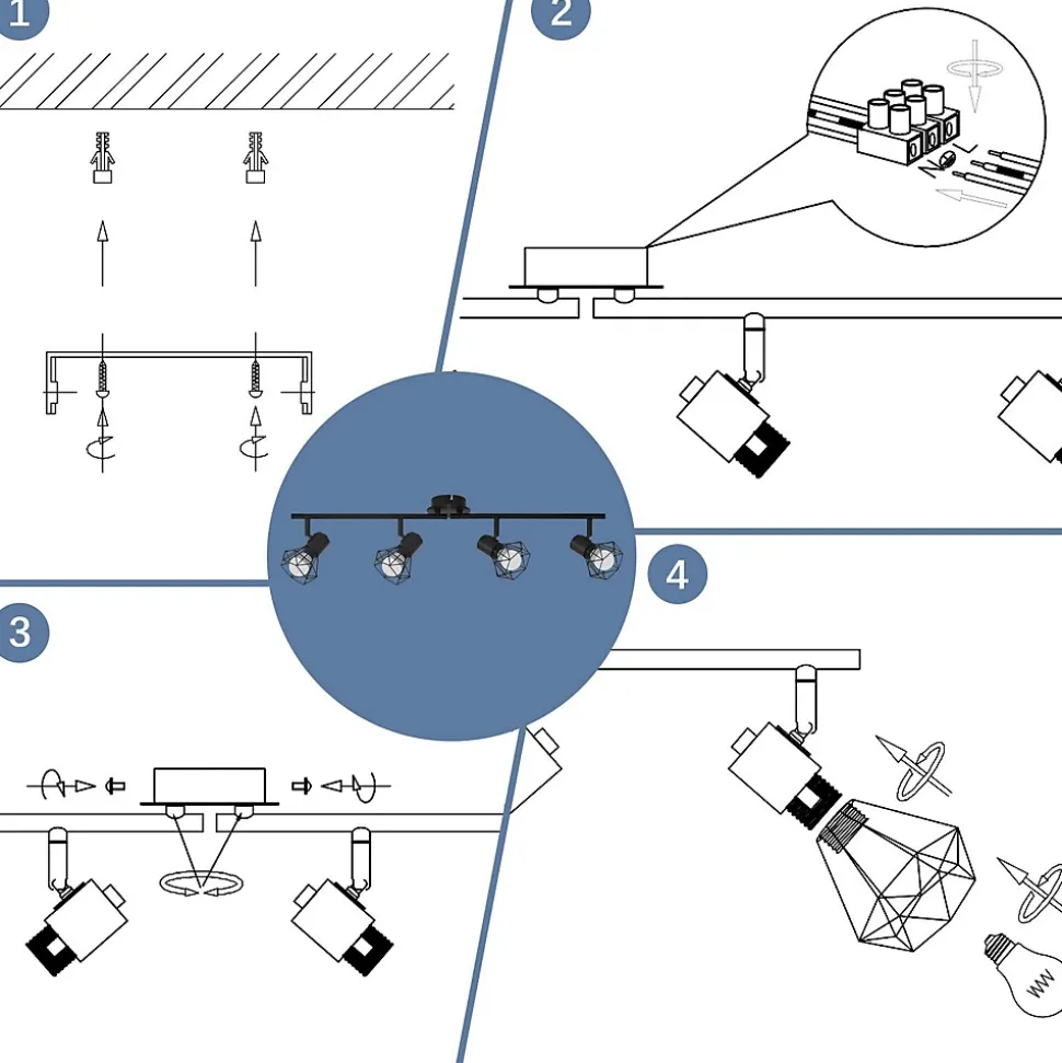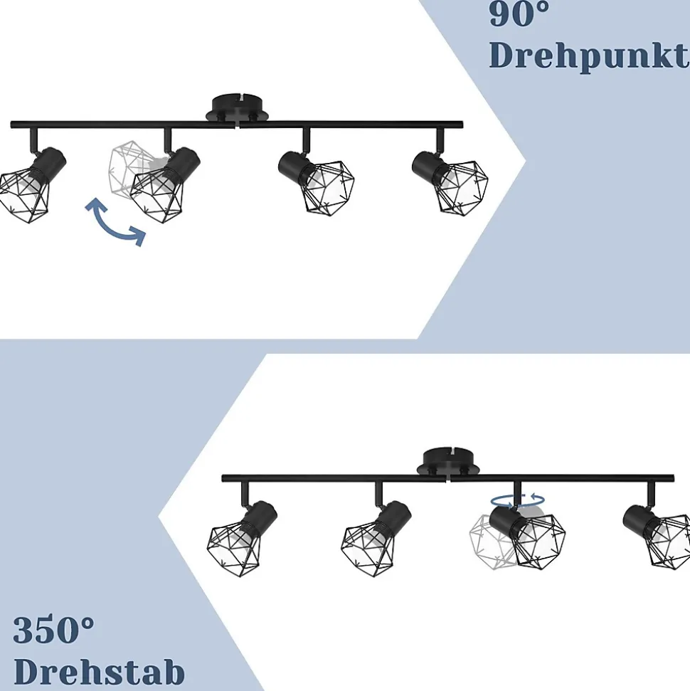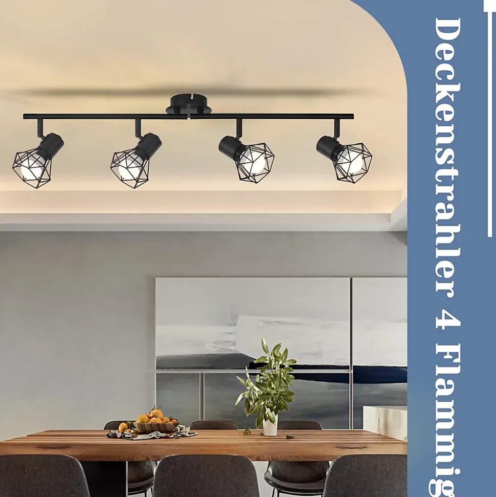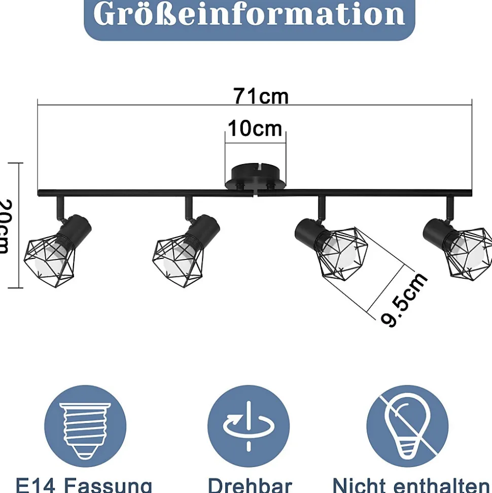 【Design rétro】 Le plafonnier noir est fabriqué en métal de haute qualité, difficile à rouiller, robuste et durable. La base ronde mate de cette lampe de cuisine LED est très moderne et minimaliste. Il convient non seulement à l’éclairage intérieur de style industriel, mais également à la décoration intérieure de style moderne.【Éclairage flexible】 Ce plafonnier spot peut être tourné à 330° et réglé à 90°. Ce spot de cuisine LED peut être tourné individuellement pour répondre facilement à vos besoins d’éclairage pour votre pièce en pointant dans différentes directions, cet éclairage intérieur est parfait pour l’éclairage de la salle à manger, l’éclairage de la chambre.【Supports de lampe standard】 Ce spot de plafond à 4 ampoules dispose de quatre douilles E14 standard pour des ampoules de 25 watts maximum. Ce plafonnier spot convient à toutes les lampes à économie d’énergie E14, ampoules et lampes LED. Attention : les ampoules ne sont pas incluses. Vous pouvez choisir différentes couleurs (blanc chaud/blanc froid) en fonction de votre couleur de lumière préférée.【Application multi-scénarios】 Les spots de plafond LED peuvent être installés non seulement au plafond comme éclairage de salon, de chambre à coucher, de couloir, mais également au mur comme éclairage d’armoire, éclairage de cadre de porte. Ce plafonnier industriel a un design simple, très adapté à l’éclairage intérieur, vous pouvez l’installer à différents endroits selon vos besoins.【Installation facile】 Il existe deux options d’installation pour ce plafonnier pour chambre d’enfant : il peut être monté comme spot mural noir au mur ou comme plafonnier au plafond. Cette applique murale ne nécessite pas d’interrupteur séparé et se connecte directement au circuit, ce qui rend l’installation très simple et pratique, idéale pour les cuisines et les couloirs.