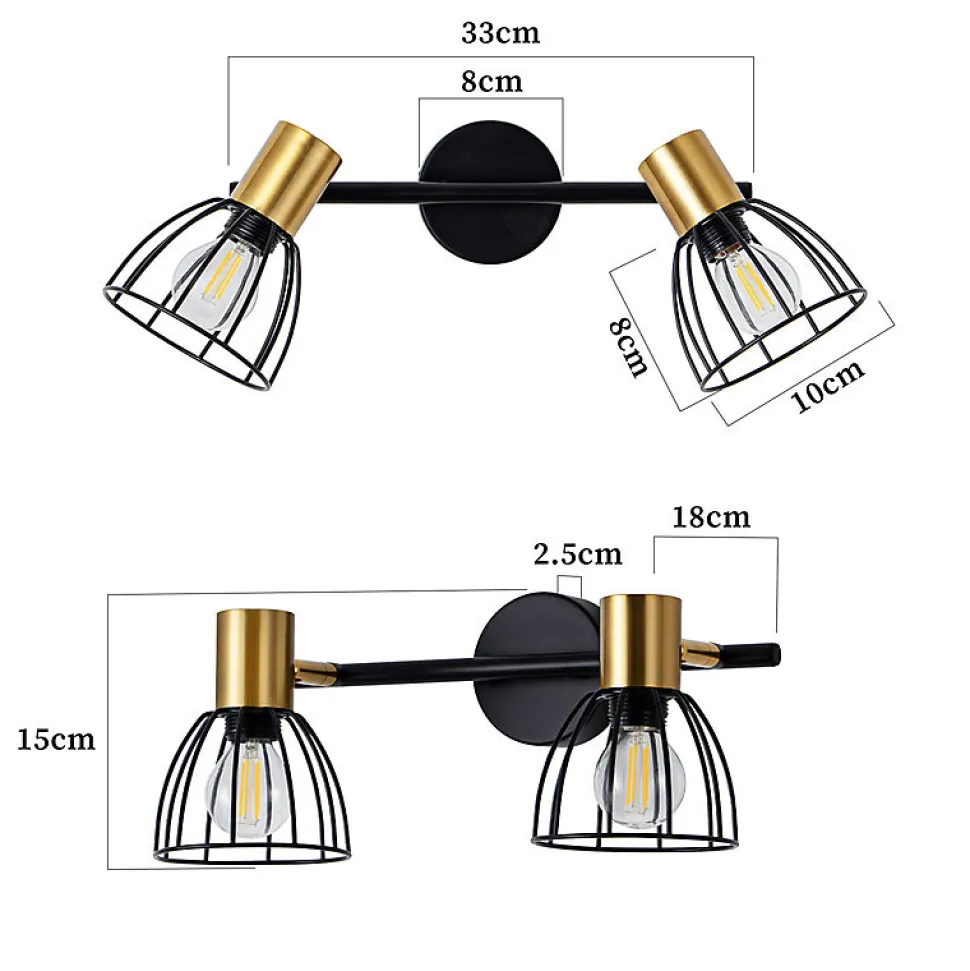 Design rétro : Cette applique murale présente une structure en fer forgé ajourée de style industriel, associant un cadre en fer noir à des bras de lampe couleur laiton pour créer un contraste visuel entre vintage et luxe discret. Ses lignes épurées dégagent un caractère industriel affirmé. Installée dans une entrée ou un couloir, elle devient un point focal saisissant dans la pièce.Éclairage unique : La lumière de cette lampe de chevet traverse la structure en fer forgé et se réfracte en de multiples ombres industrielles vintage. La lumière chaude est diffusée en douceur et sans éblouissement, créant une atmosphère unique dans la pièce. Utilisée comme lampe de chevet ou comme décoration murale, elle rayonne d’un charme rétro industriel distinctif.Matériaux : Le spot est fabriqué en fer forgé de haute qualité, tandis que le bras de lampe et les pièces de fixation sont en métal. Cette construction garantit robustesse, résistance à l’usure, protection contre la rouille et la corrosion, alliant qualité tactile et durabilité. L’abat-jour original en forme de cage protège non seulement l’ampoule, mais constitue également un élément décoratif artistique dans la pièce.Orientable à 350° : Le bras de cette lampe de cuisine est flexible et permet d’orienter la lumière avec précision, répondant ainsi à divers besoins fonctionnels, comme la lecture ou la création d’une ambiance particulière. Elle crée un jeu d’ombres et de lumières à la fois pratique et élégant, idéal pour les espaces de travail et d’étude.Environnements adaptés : Facile à installer, cette lampe est parfaite pour les salons, chambres, lofts, chambres d’hôtes, couloirs, cafés au style industriel chic, cages d’escalier, cuisines, salles à manger, showrooms, galeries et bien plus encore. Elle apporte la touche finale idéale pour souligner le caractère unique de votre espace et lui conférer une esthétique industrielle vintage singulière.