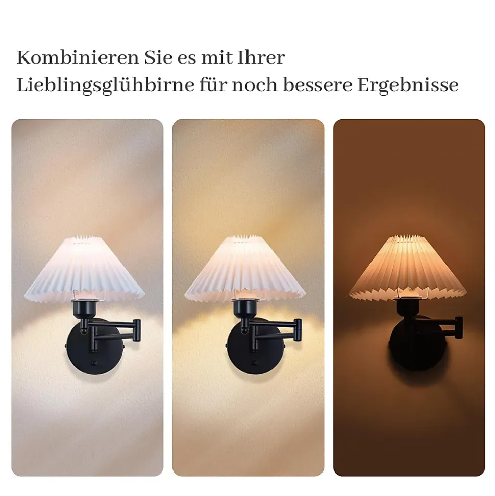 Abat-jour en tissu élégant : Fabriqué en tissu, il adoucit la lumière, crée une atmosphère chaleureuse et ajoute à la beauté de votre maisonPoteau de lampe en métal rotatif : matériau métallique robuste, conception de rotation à 180 degrés à deux nœuds, réglage flexible de la direction de l’éclairage.Compatibilité de plusieurs sources de lumière : la tête de lampe E27 est compatible avec une variété d’ampoules et permet de basculer librement entre la lumière froide, la lumière neutre et la lumière chaude.Installation facile : facile à installer, s’adapte à différentes scènes de maison et améliore le goût de la pièceLarge applicabilité : convient au lit, à la chambre, au salon, au couloir, etc. pour répondre à différents besoins d’éclairage