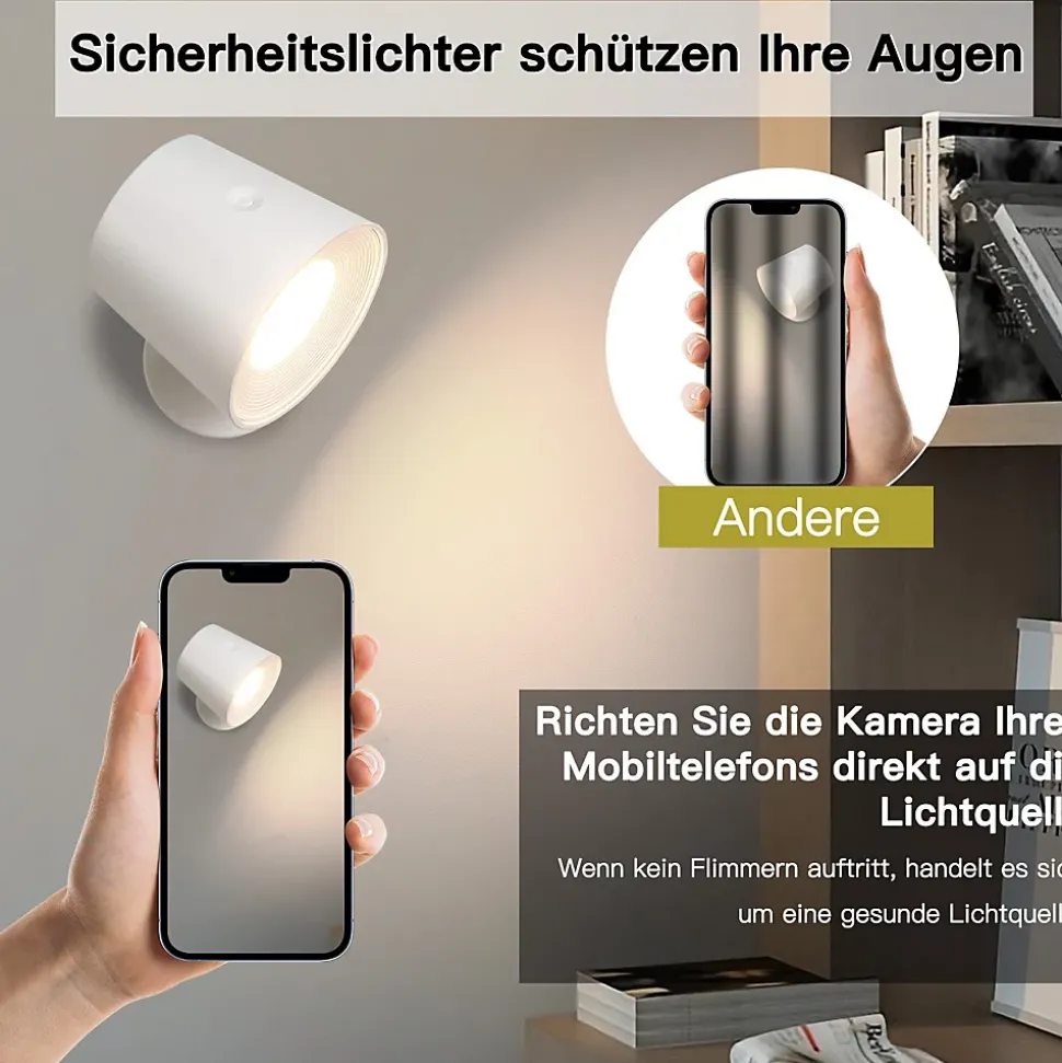 【3 Températures de couleur et Luminosité Réglable】L’applique murale intérieure offre un design tactile avec 3 températures de couleur et une luminosité ajustable de 10% à 100%. Utilisez-la comme applique murale, lampe de chevet ou lampe de lecture. Idéale pour les chambres, salons, couloirs, cages d’escalier, armoires, vitrines, ainsi que pour le travail, la lecture, l’apprentissage, le camping et comme éclairage de secours. La lampe murale noire est le choix parfait pour votre maison.【360° Réglable】Cette lampe de lecture murale dispose d’un design unique avec une base de montage magnétique et un adhésif 3M puissant, permettant une installation facile sans endommager le mur. Elle peut être retirée de la base pour être rechargée ou utilisée comme lampe portable. Design portable, petit et léger. Cet éclairage mural est non seulement fonctionnel mais aussi une œuvre d’art.【Batterie Intégrée et Charge USB】Équipée d’un connecteur Type-C et d’une batterie de 2000mAh, cette applique murale se charge en 3 à 4 heures. Elle offre une autonomie de 5 heures à pleine luminosité, 8 heures à luminosité moyenne et 20 heures à faible luminosité. Le design LED est simple et à la mode, s’adaptant à la plupart des styles de décoration.【Protection des Yeux】Cette applique murale LED sans fil est équipée de 22 ampoules LED de haute qualité, offrant une lumière uniforme et agréable sans éblouissement ni scintillement. Elle protège vos yeux de la fatigue et convient à une utilisation prolongée. Offrez à vos yeux la protection qu’ils méritent grâce à notre applique murale innovante avec batterie.【Package et Service Client】L’emballage contient : 1 lampe murale USB, 1 câble de charge Type-C, 1 ruban adhésif 3M, 1 boule magnétique rotative à 360°, 2 vis, 1 manuel d’utilisation. Nous offrons une garantie de 2 ans. Si vous avez des questions ou des problèmes pendant l’installation, veuillez contacter notre service clientèle par e-mail. Nous résoudrons le problème dans les 24 heures.