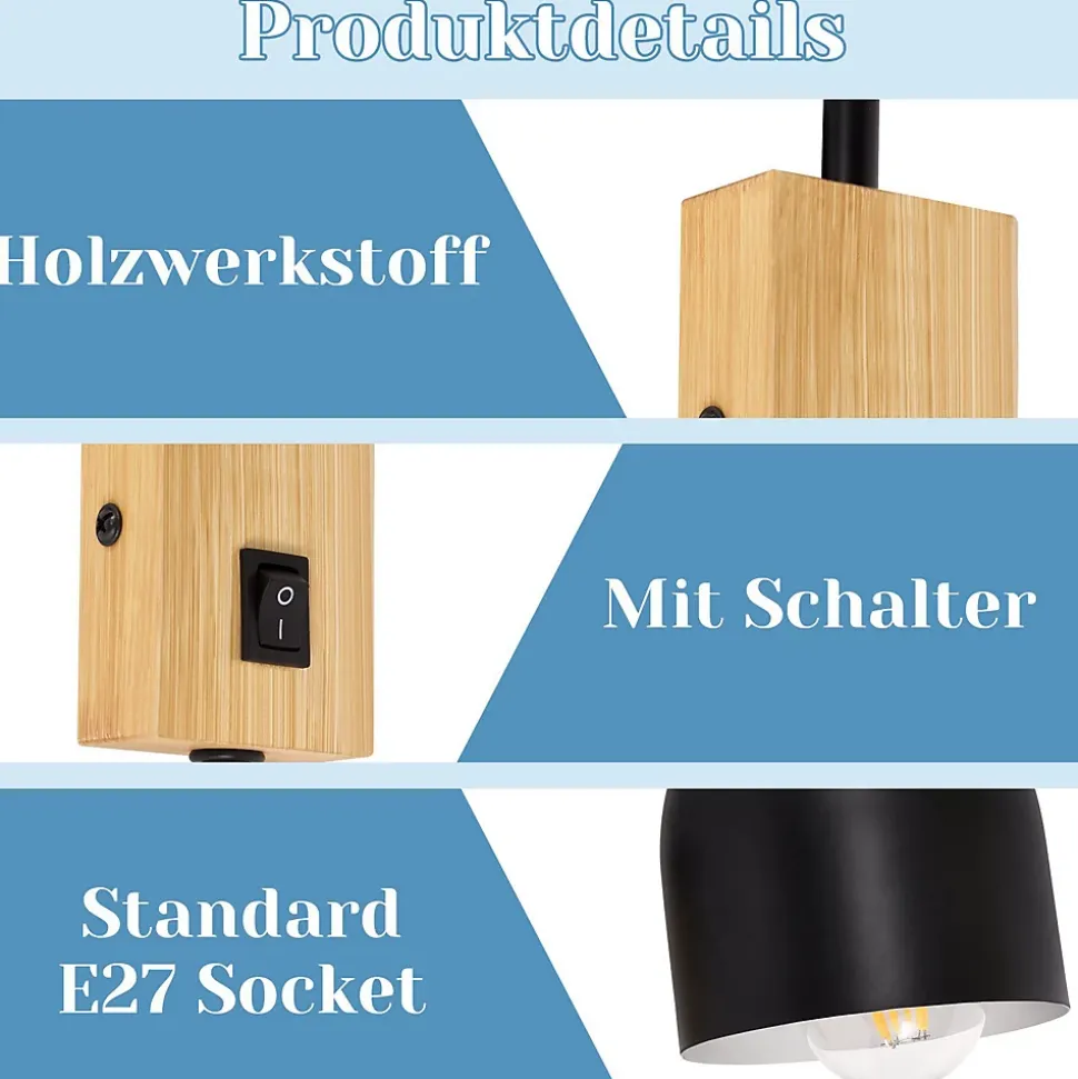 Applique murale en bois Spots muraux 【Design vintage et tête de lampe pivotante】 L’applique murale en bois avec interrupteur est plus pratique, il suffit d’appuyer sur l’interrupteur et le corps de la lampe peut également pivoter à 330°, de sorte que cette applique murale avec interrupteur peut éclairer différents coins de la pièce. chambre. Son design est également simple et peut être utilisé comme lampe de chevet et décoration de chambre.【Matériau de haute qualité】 L’applique murale en bois a un abat-jour en métal, une apparence à la mode et belle, un grain de bois naturel brillant, sans fissures. Ce spot mural 1 flamme est composé d’une combinaison de papier de bois et de métal et offre un look unique et agréable à regarder !【Douille E27】 L’applique murale pivotante vintage adopte une conception de support de lampe E27, qui convient à différents types de lampes E27, ce qui permet aux utilisateurs de choisir facilement différentes sources de lumière. Et la conception du support de lampe E27 rend le remplacement de l’ampoule facile et rapide, les utilisateurs peuvent remplacer les ampoules à tout moment pour répondre aux différents besoins d’éclairage.【Facile à installer】 Cette lampe de couloir noire comprend des instructions et tous les composants d’installation, ce qui la rend facile et rapide à installer. De plus, les étapes d’installation sont simples, sans avoir besoin d’outils professionnels ou d’opérations complexes, offrant aux utilisateurs une solution pratique et facile. expérience d’installation.【Scènes applicables】 Cette applique murale d’intérieur pour chambre d’enfant convient à une variété de scénarios et n’affecte pas le style de décoration original de la pièce. Convient aux chambres, salons, cuisines, salles à manger, escaliers, couloirs, salles d’étude, tables de chevet. , couloirs, balcons. Cette applique se marie également très bien avec un interrupteur – applique E27 spot mural orientable métal noir lampe de couloir vintage intérieur