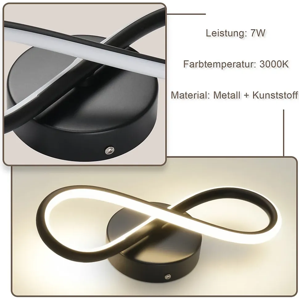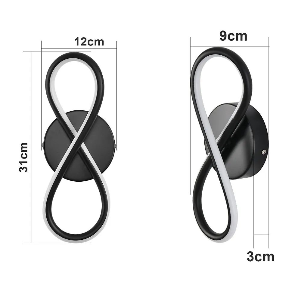 Design moderne : cette applique murale présente ce design simple et créatif en forme de « 8 », qui donne au mur une sensation moderne tout en offrant des effets d’éclairage agréablesTempérature de couleur : température de couleur chaude de 3000 K, lumière douce, proche de la lumière naturelle, pas d’effet stroboscopique, pas d’éblouissement, n’irrite pas les yeux et convient à une utilisation à long terme pour créer une atmosphère de vie confortableInformations sur le produit : Dimensions 31 x 12 x 9 cm, puissance 7 W, fabriqué en métal et silicone de haute qualité, qui résiste à la rouille et à la corrosion. Pour assurer la durabilité et la beauté, convient à tous les types de décorations intérieuresChamp d’application : Convient pour les escaliers, le salon, la chambre, la cuisine, le bureau, le couloir et d’autres décorations intérieures. Son look moderne et son éclairage agréable en font un choix de décoration idéalFacile à assembler : cette applique murale est livrée avec des instructions claires et tous les accessoires d’installation dans l’emballage. Avant de connecter l’applique murale au circuit, veuillez éteindre l’interrupteur et débrancher l’alimentation électrique pour éviter tout dommage