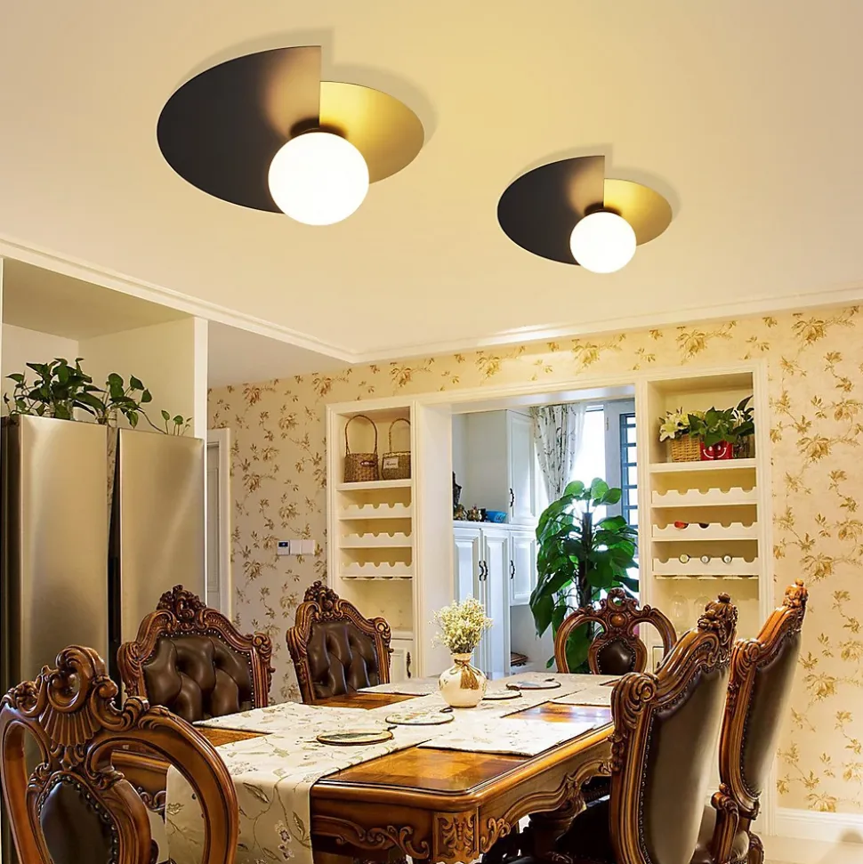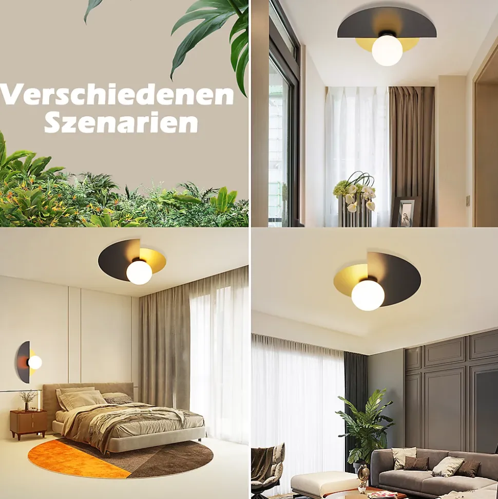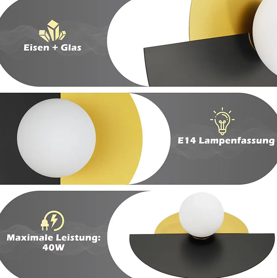 DESIGN : Cette applique murale présente une palette de couleurs classique noir et or et un design géométrique exquis qui combine subtilement les styles moderne et rétro. La forme géométrique du plafonnier montre une sensation unique de tridimensionnalité et de superposition. Ce design donne à la pièce une atmosphère artistique et moderne unique et fait de votre maison un lieu extraordinaire.MATÉRIAUX : Le corps de la lampe de l’éclairage mural est fabriqué en métal durable pour garantir une durabilité et une robustesse durables. L’abat-jour sphérique en verre blanc laiteux fournit une lumière douce et uniforme et crée une atmosphère lumineuse chaleureuse et confortable.PLUSIEURS SOURCES DE LUMIÈRE DISPONIBLES : Cette lampe de salon est équipée d’une douille E14 compatible avec une variété de sources lumineuses, vous permettant de choisir facilement la source de lumière la plus adaptée en fonction de vos besoins et préférences personnels. Assurez-vous de pouvoir répondre à vos différents besoins d’éclairageAPPLICATION POLYVALENTE : Cette applique murale convient aux chambres à coucher, aux salons, aux couloirs, aux cafés et à d’autres scénarios, qui peuvent facilement créer une atmosphère lumineuse chaleureuse et confortable et améliorer l’esthétique globale de votre maison. Que vous souhaitiez créer un environnement relaxant dans la chambre ou une ambiance sophistiquée dans la salle à manger, cet éclairage mural s’intégrera parfaitement et rehaussera le style général de la pièce.SERVICE CLIENT : Si vous avez des questions sur nos plafonniers, n’hésitez pas à nous contacter. Nous vous contacterons dans les 24 heures. Si vous avez encore des questions, veuillez cliquer sur « Contacter le vendeur » pour nous contacter. Nous ferons de notre mieux pour résoudre votre problème
