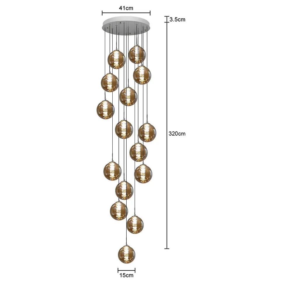 Design élégant : des lustres en boule de verre de style moderne, loft et maison de campagne, adaptés à tous les styles d’ameublement, créent l’ambiance idéale dans la pièceDimensions du produit – diamètre : ø15 cm (chaque boule de couleur gris fumée), taille de la plaque de plafond : Φ41 * 3,5 cm, tension : 220-240 V, longueur du câble : 3,2 mRéglable en hauteur : suspension élégante avec corps de lampe en verre de haute qualité. La suspension la plus longue mesure 3,2 m. Si nécessaire, la hauteur de la suspension peut être réglée de 80 cm à 320 cm et convient particulièrement aux cages d’escalier ou aux bâtiments publics.Éclairage unique : les abat-jour en verre suspendus à des fils de différentes longueurs créent une esthétique à plusieurs niveaux d’une beauté enchanteresseOptions supplémentaires : si vous avez besoin de luminaires suspendus ou carrés supplémentaires, le délai de livraison est d’environ 100 jours