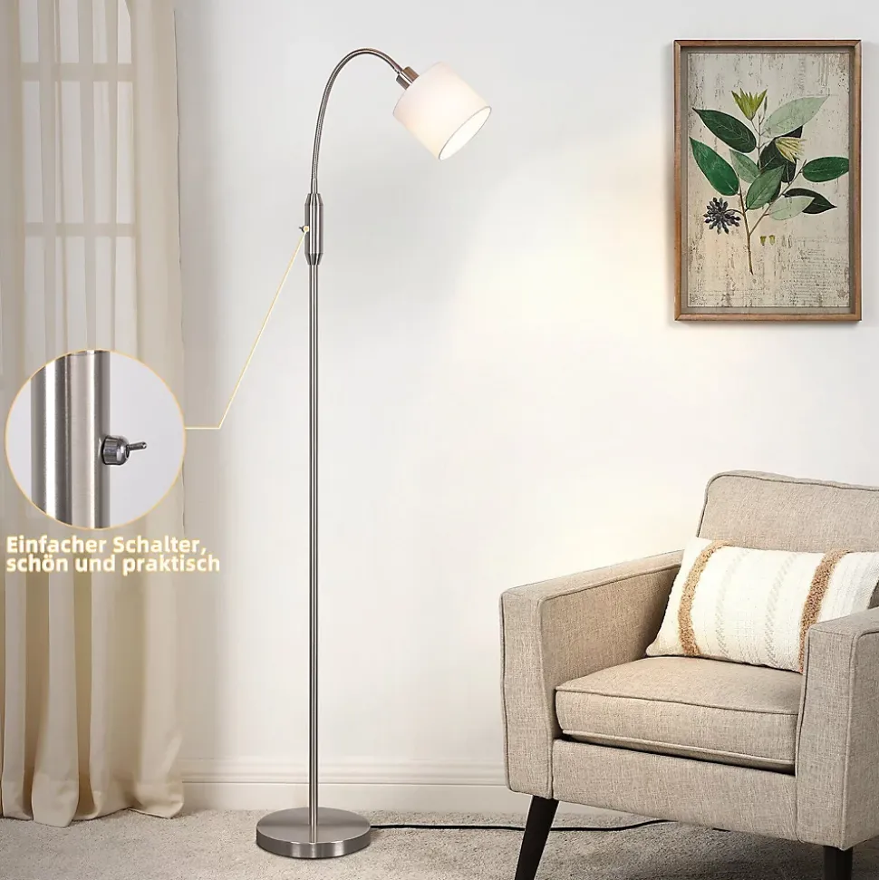 Bons effets de lumière : L’utilisation d’abat-jour souples dans les lampadaires textiles permet une diffusion efficace de la lumière, créant un éclairage doux et agréable. Cette lumière douce crée une ambiance chaleureuse et apporte un éclairage cosy dans la pièceFlexibilité : La rotation à 360° de la tête de lampe permet une plus grande liberté pour régler l’éclairage. Vous pouvez concentrer la lumière sur une zone spécifique ou la diffuser dans toute la pièce selon vos besoins. Cette flexibilité fait des lampadaires textiles un choix idéal pour divers besoins d’éclairageGrande zone d’éclairage : les lampadaires textiles sont grands et accrocheurs et peuvent couvrir une large zone d’éclairage. Grâce à la conception des colonnes verticales, ils assurent un éclairage uniforme et suffisant dans la pièce, qui peut également couvrir de grandes surfacesEffet décoratif élevé : avec son design textile unique, vous pouvez trouver un lampadaire textile adapté à chaque style d’intérieur, qu’il soit moderne minimaliste ou classiquement élégant. Il devient un point fort décoratif dans la pièce et donne à la pièce une touche esthétiqueLarge gamme d’applications : le lampadaire textile peut être placé dans différentes pièces telles que le salon, la chambre, le bureau ou le bureau selon vos besoins pour vous offrir l’éclairage et la décoration que vous souhaitez
