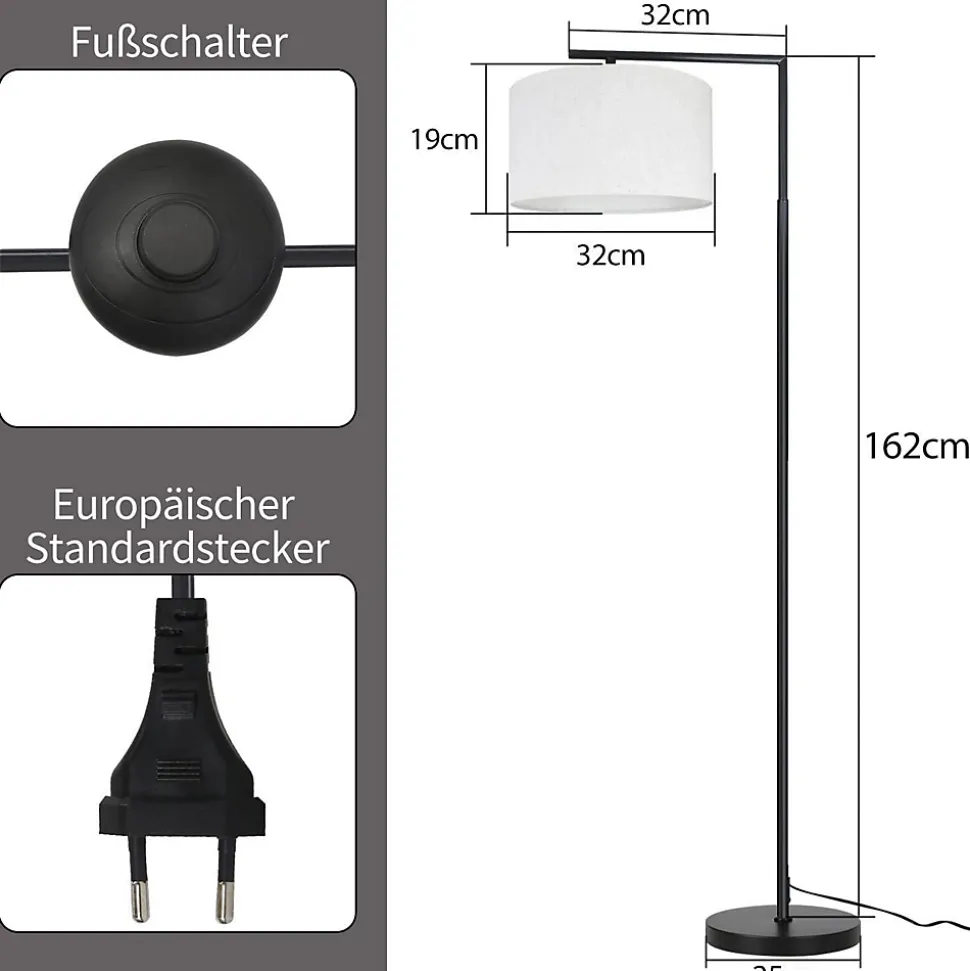 【Design élégant et moderne】Notre lampadaire E27 moderne convient à la décoration architecturale moderne et rétro, s’adapte à tous les styles de pièces, son tissu d’abat-jour est magnifique et moderne dans le salon, la chambre à coucher, le bureau etc chez vous ou au bureau. Le socle rond assure un équilibre supplémentaire et permet de se tenir debout sur le sol en toute sécurité.【Pédale pratique】Le lampadaire vivant est équipé d’un interrupteur à pédale et d’un câble d’alimentation de 2 mètres. Il vous permet d’allumer ou d’éteindre la lampe avec le pied. Le long câble d’alimentation vous permet de placer la belle lumière à l’endroit voulu avec un minimum de contraintes.【Détails techniques】Dur de l’abat-jour : 32*19CM. Long câble d’alimentation : 200CM. Diamètre de la base : 25*4CM. Hauteur : 166CM. Matériel : fer & tissu. Type d’alimentation et de prise : corded-electric. Tension : 230V(ampoules non incluses).ampoule E27(Max. 40W ).【Abat-jour en tissu】 Un lampadaire à la décoration harmonieuse avec un abat-jour en tissu ! S’adapte parfaitement au look style maison de campagne, moderne, rétro, vintage, style industriel. Super comme lampe de lecture dans la chambre à coucher, le salon , les cafés, les hôtels, les bureaux et la salle à manger !【Service client】180° Abat-jour pivotant.Nous offrons une garantie d’achat de 2 ans sur l’éclairage. Nous vérifions soigneusement tous les produits avant de les expédier. Si vous avez des questions, n’hésitez pas à nous contacter et nous vous répondrons dans les plus brefs délais.