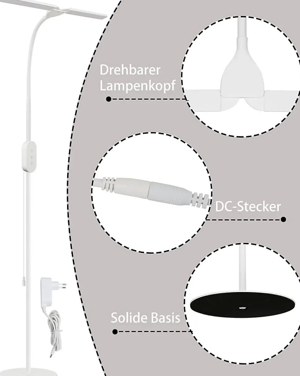 【Température de couleur et luminosité réglables】 Les lampadaires LED sont parfaits pour éclairer les lieux de travail modernes, les bureaux ou les lampes de lecture dans les chambres, les salons. La LED intégrée émet une lumière vive et les utilisateurs peuvent basculer entre différentes températures de couleur (3 000 K-5 000 K) et luminosité en touchant les boutons de fonction du panneau de commande pour s’adapter aux différents environnements.【Fonction minuterie et mémoire】 Le lampadaire dispose d’une fonction minuterie de 40 minutes. Appuyez longuement sur le bouton de la minuterie, le lampadaire clignote 2 fois, à ce moment la fonction minuterie est activée et s’éteindra automatiquement après 40 minutes. Le lampadaire de lecture dispose également d’une fonction de mémoire qui maintient automatiquement la dernière température de couleur et la luminosité réglées lorsque l’appareil est toujours sous tension.【Détails techniques】Puissance : 9 W ; Température de couleur : 3 000 K-5 000 K ; Luminosité : 15 % à 100 % ; Longueur du câble : 147 cm ; Matériau : fer et aluminium ; Mode d’alimentation : entrée AC100-240V50/60Hz, sortie DC5V ; L’angle de rotation maximum d’une seule tête de lampe : 90 degrés【Col flexible et LED haut de gamme】 Le col de cygne réglable à 360 ° donne à ce lampadaire moderne une flexibilité ultime pour diriger la lumière exactement là où elle est le plus nécessaire, vous offrant ainsi la lumière parfaite pour toutes vos activités. Le lampadaire avec LED de haute qualité émet sans scintillement et sans éblouissement, ce qui peut protéger efficacement vos yeux de l’inconfort et de la fatigue même après de longues heures de travail ou d’étude【Multi-applications】 Notre lampe de lecture est le cadeau idéal pour toute occasion. C’est certainement un cadeau spécial pour les enfants, les parents, les amoureux, les amis et les clients de la maison.