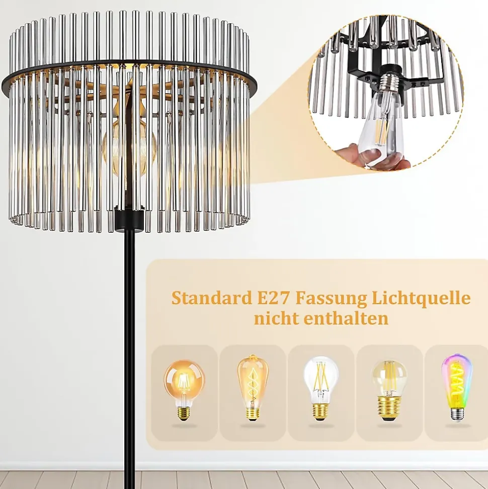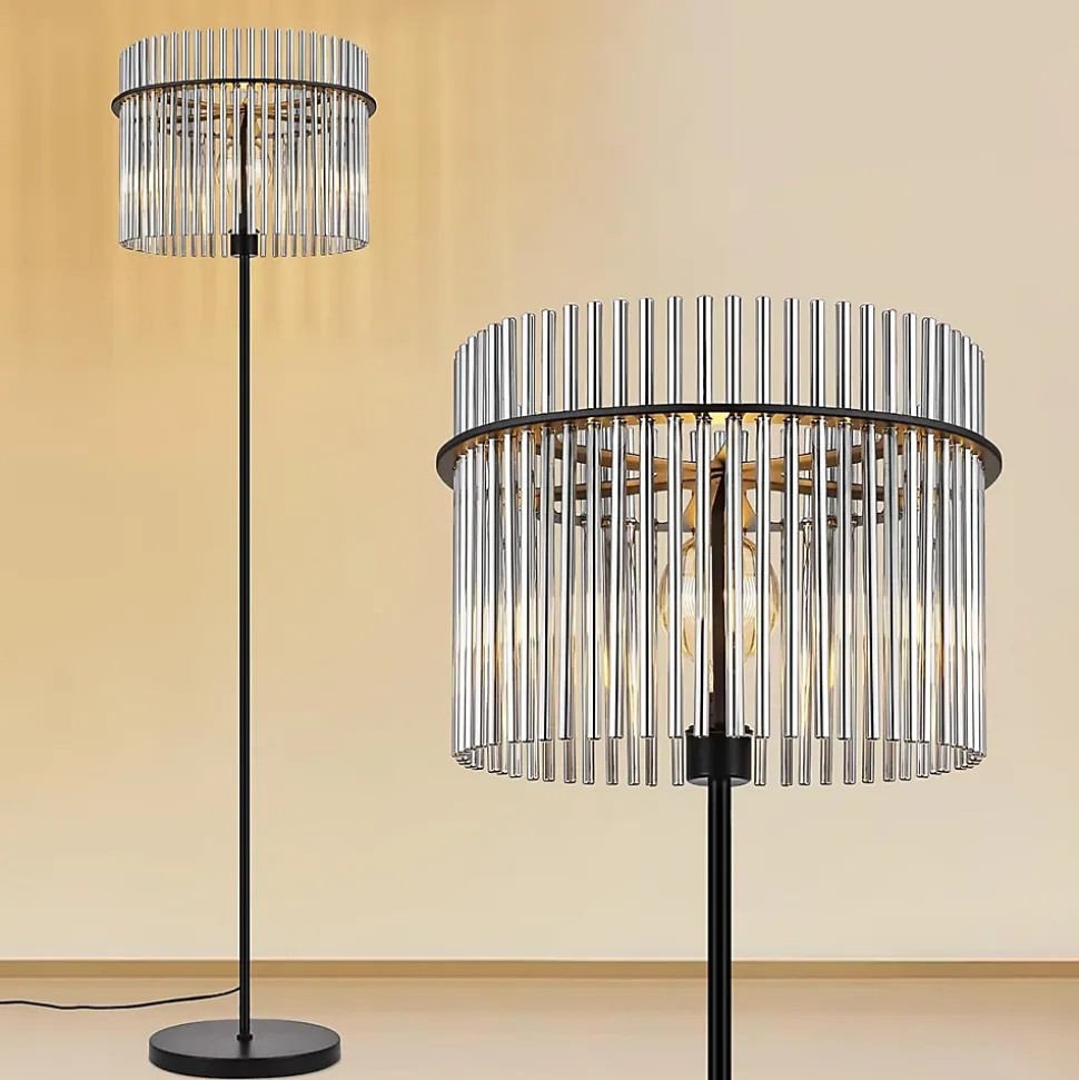 Design esthétique : Ce lampadaire noir pour salon, avec son abat-jour en verre gris fumé et son pied en métal noir, diffuse une douce lumière grâce à ses bandes de verre verticales – idéal pour les intérieurs modernes.Caractéristiques pratiques : Ce lampadaire en verre est fourni avec un câble de 220 cm pour une installation flexible dans les salons et les chambres. Il est doté d’un interrupteur au pied pratique, d’une puissance maximale de 40 W et d’une douille E27 (ampoule non incluse).Matériaux de haute qualité : Ce lampadaire moderne possède un pied robuste en métal noir mat et un abat-jour en verre gris fumé durable. Il répond aux normes de protection IP20 et convient à une utilisation en intérieur (220-240 V).Utilisation polyvalente : Ce lampadaire est idéal pour créer une ambiance chaleureuse ou comme élément décoratif dans les salons, les chambres ou les bureaux. Il diffuse une lumière uniforme et non éblouissante.Prêt à l’emploi : Le lampadaire LED E27 est doté d’un abat-jour et d’une structure en verre faciles à démonter et à remonter, simplifiant ainsi le nettoyage et l’entretien. Il est flexible, réglable et facile à installer.